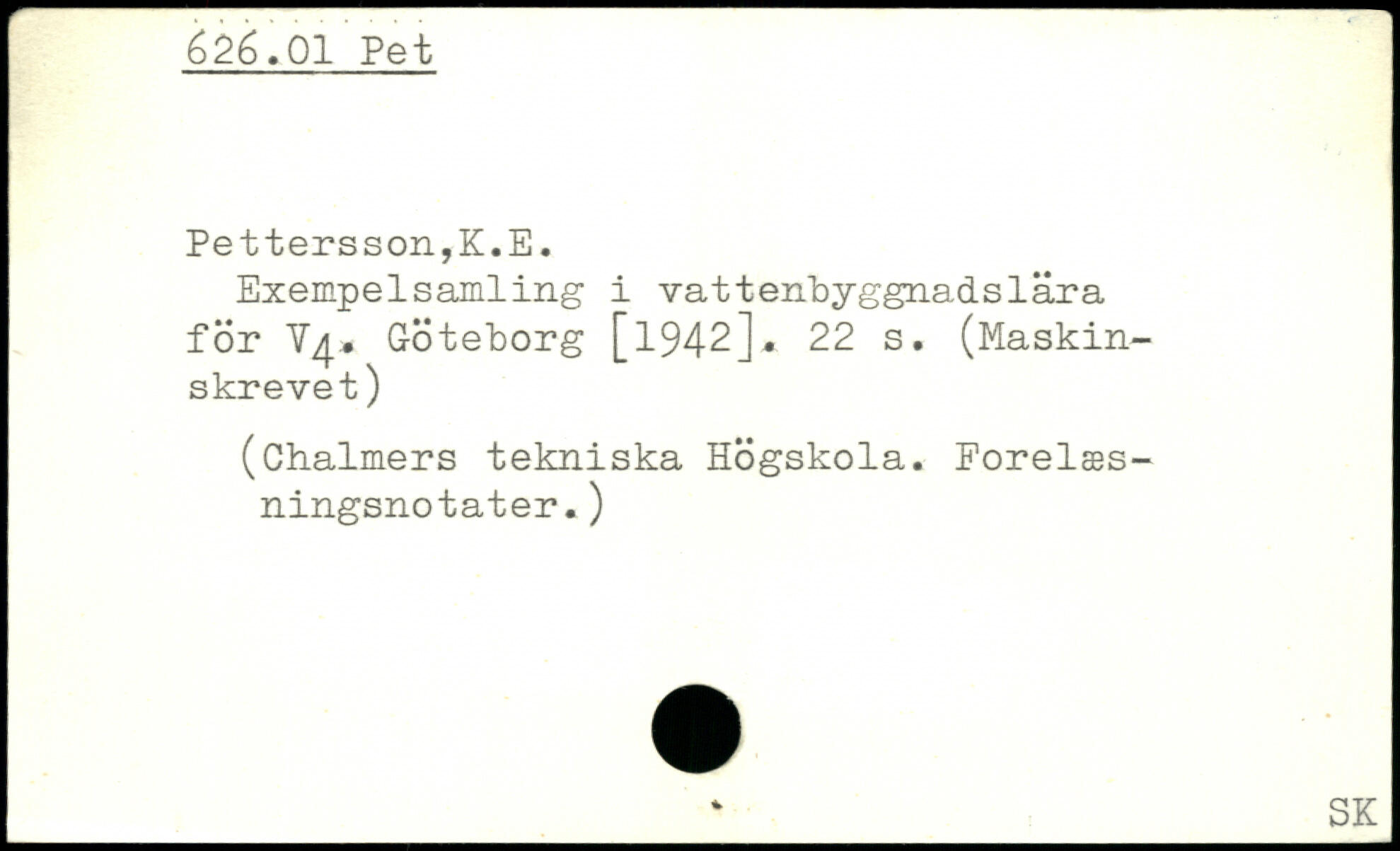 Exempelsamling i vattenbyggnadslära för V4. Göteborg [1942].