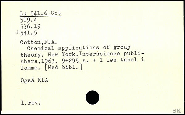 UDK: 541.6 Cot, 519.4, 1, 536.19, 541.5