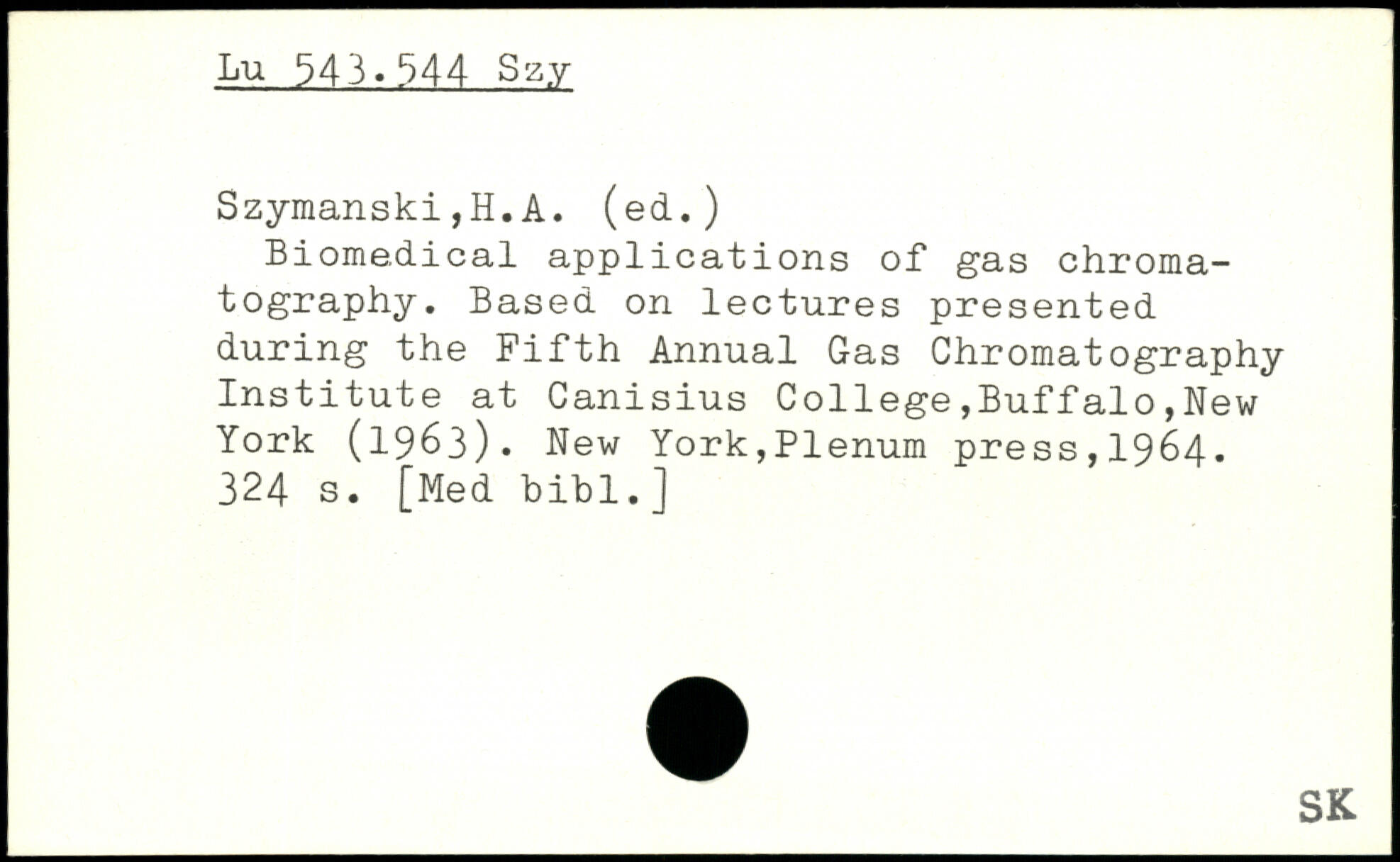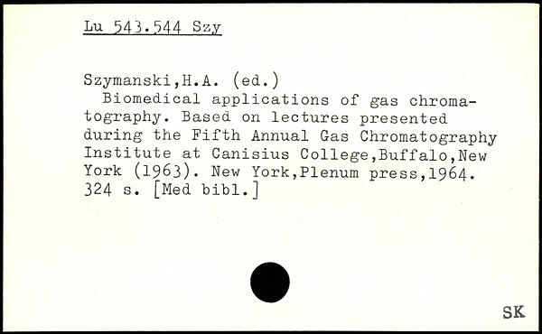 Biomédical applications of gas chromatography. Based on lectures presented during the Fifth Annual Gas Chromatography Institute at Canisius College,Buffalo,New York (1963).