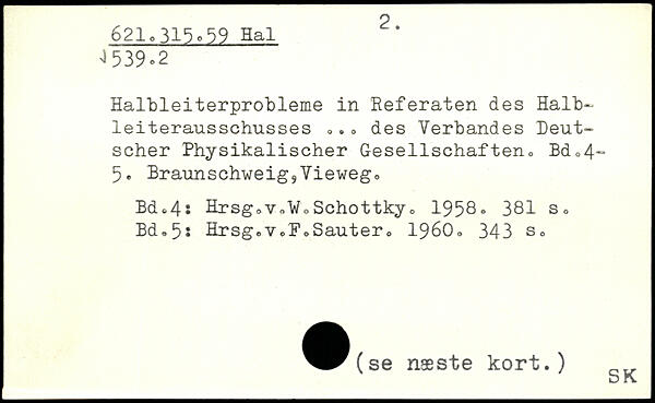 Halbleiterprobleme in Referaten des Halbleiterausschusses o.o des Verbandes Deutscher Physikalischer Gesellschaften, Bdo4-5. BraunschweigjViewego Bd,4s HrsgoVoVoSchottkyo 1958®