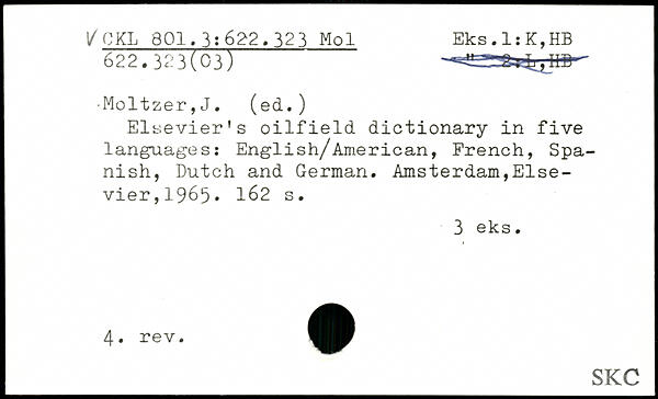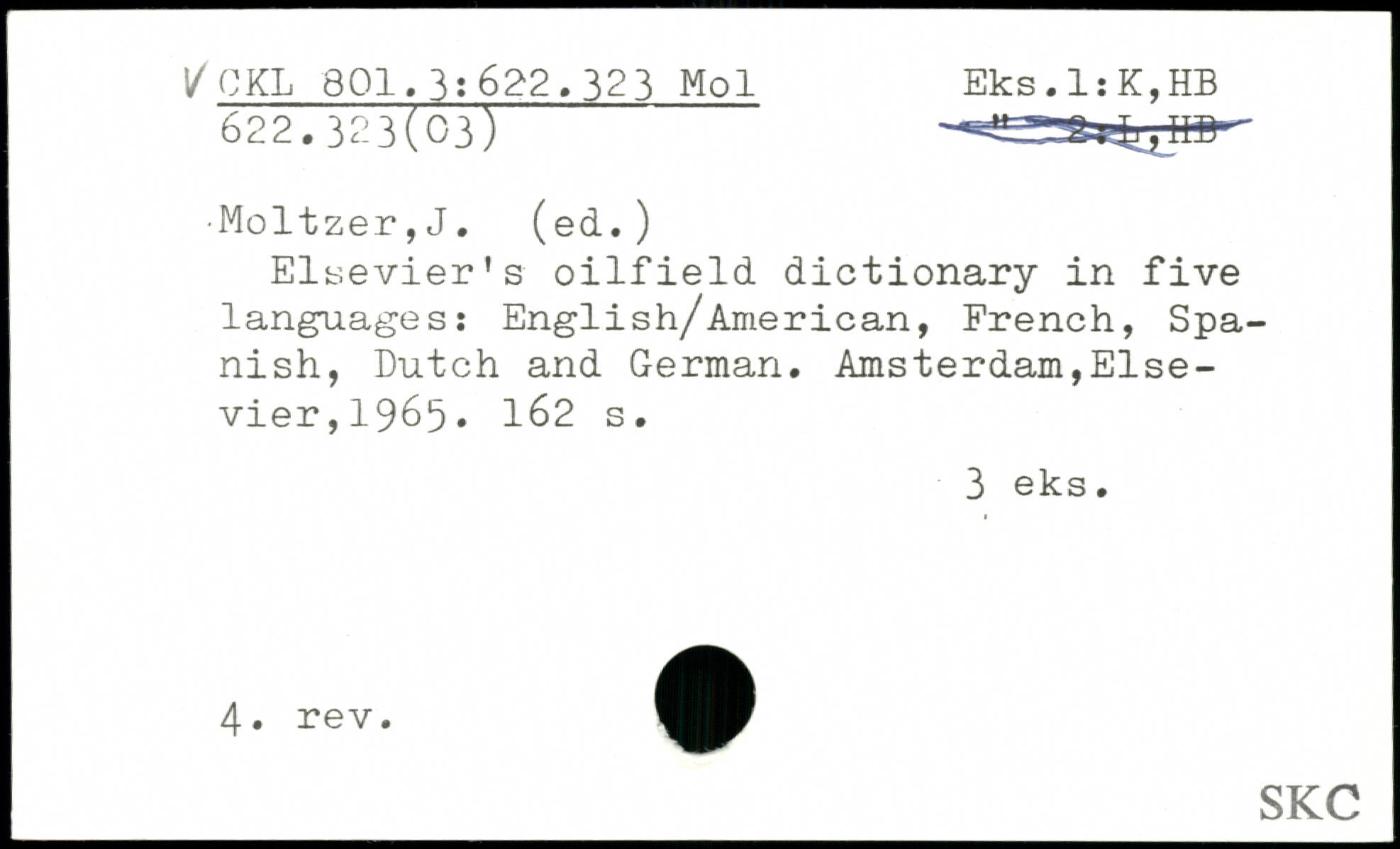 Elsevier's oilfield dictionary in five languages: English/American, French, Spanish, Dutch and German.