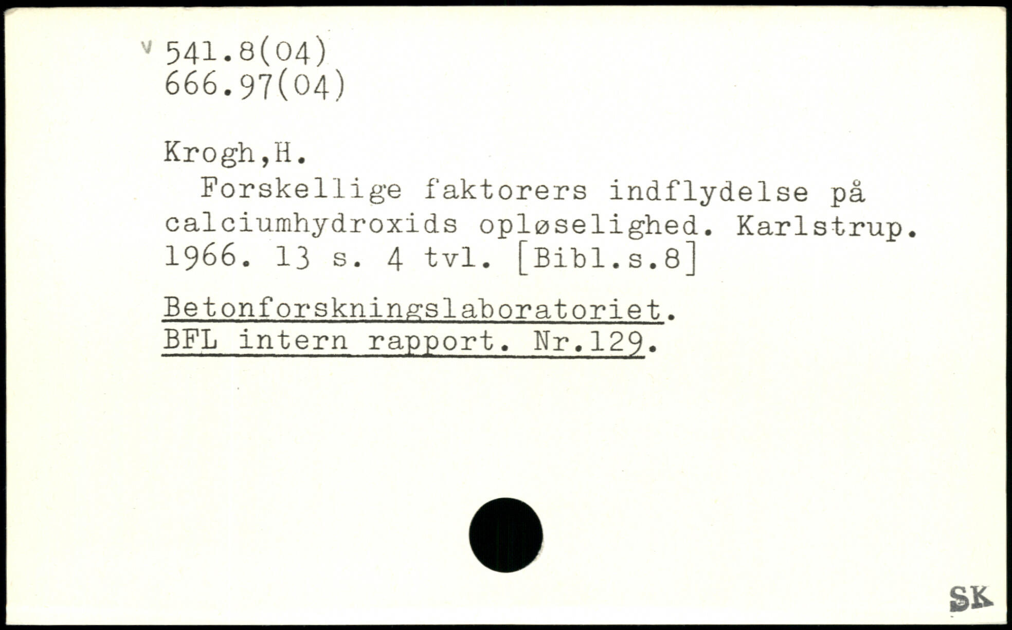 Forskellige faktorers indflydelse på Calciumhydroxids opløselighed. Karlstrup. 1966.