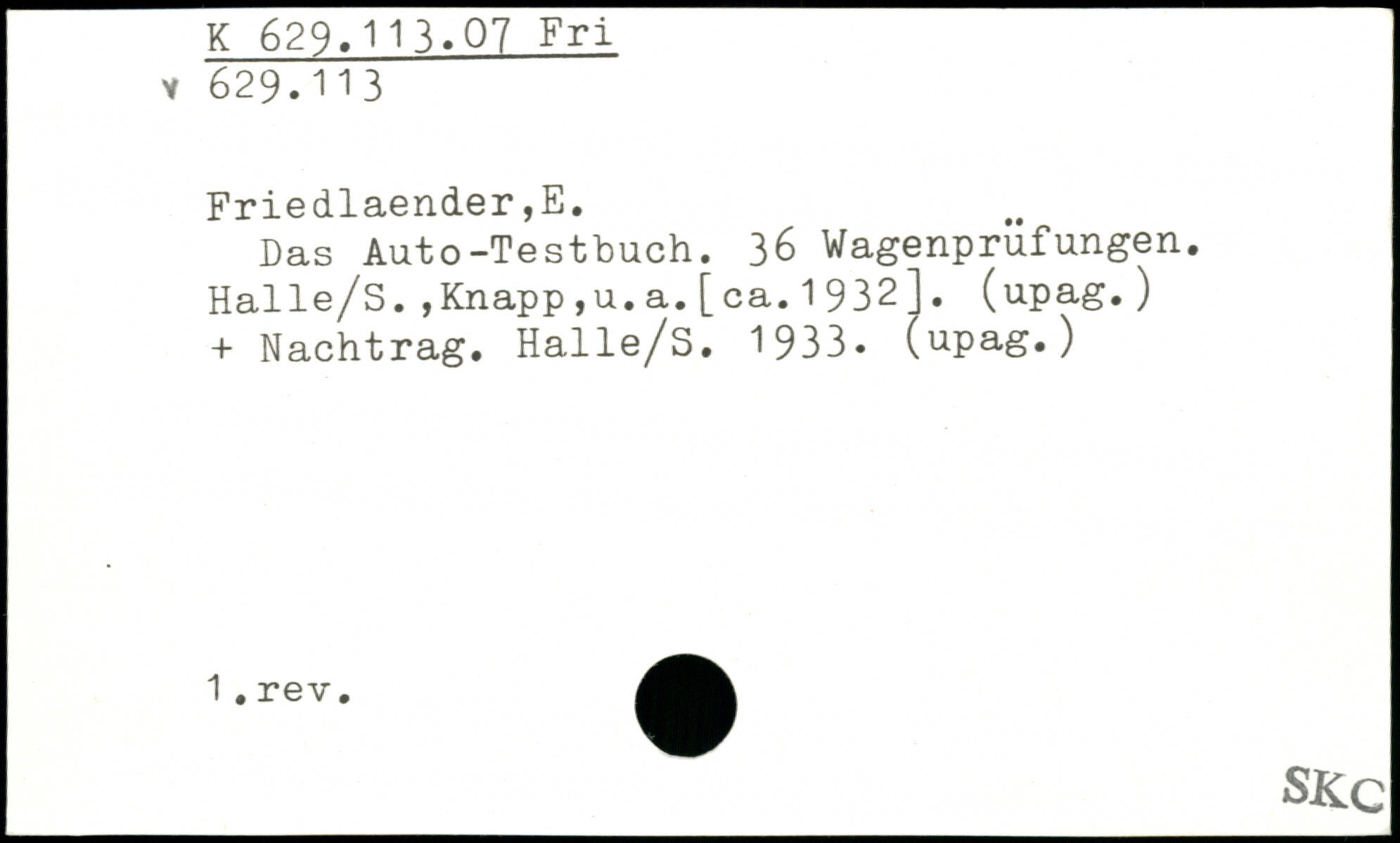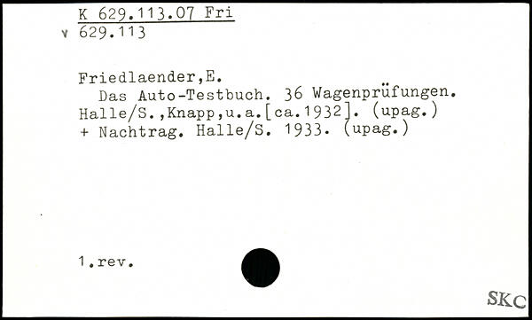 Das Auto-Testbuch. 36 Wagenprüfungen. Halle/S.,Knapp,u.a.[ca.1932]. (upag.) + Nachtrag. Halle/s. 1933. (upag.) SK G