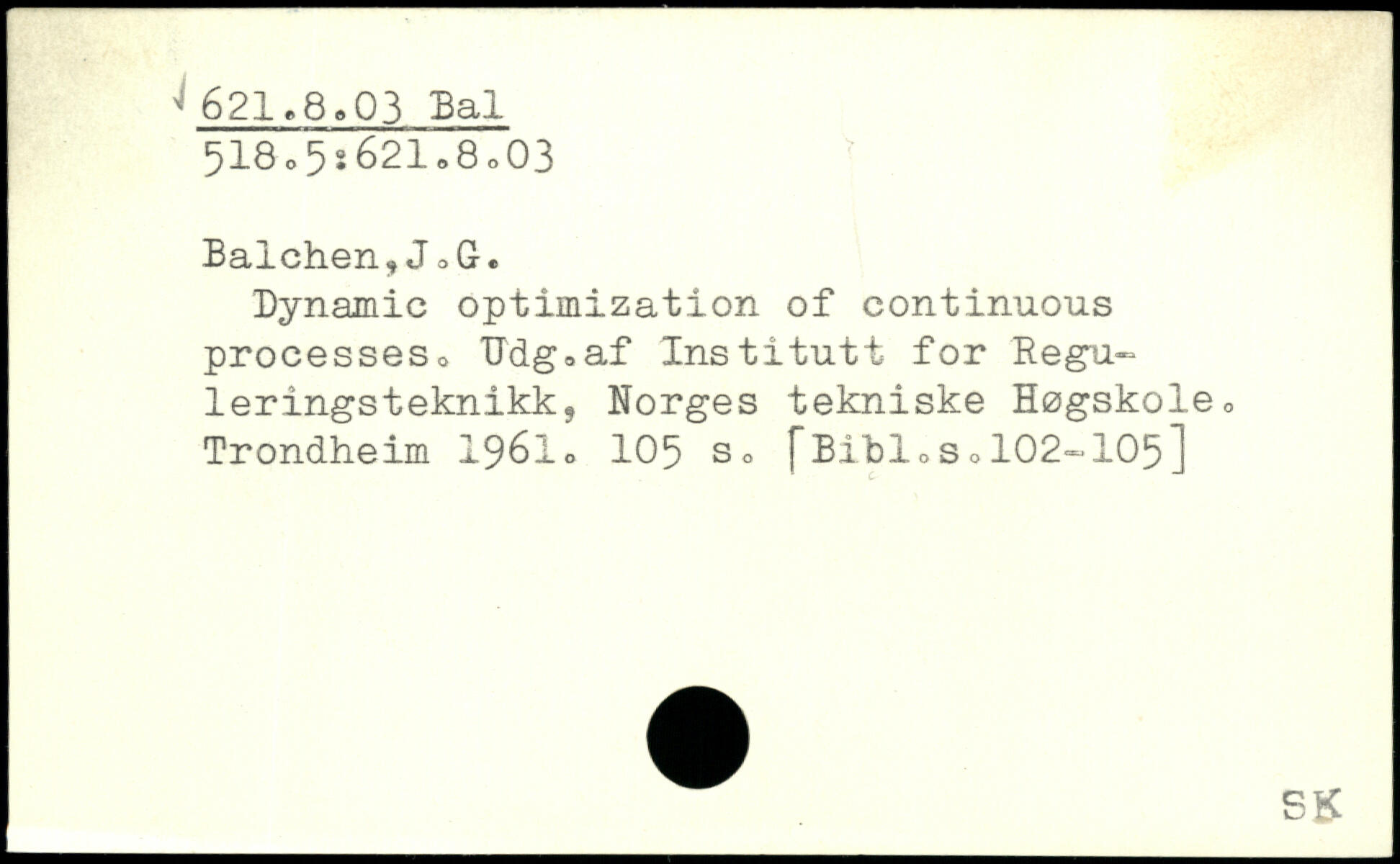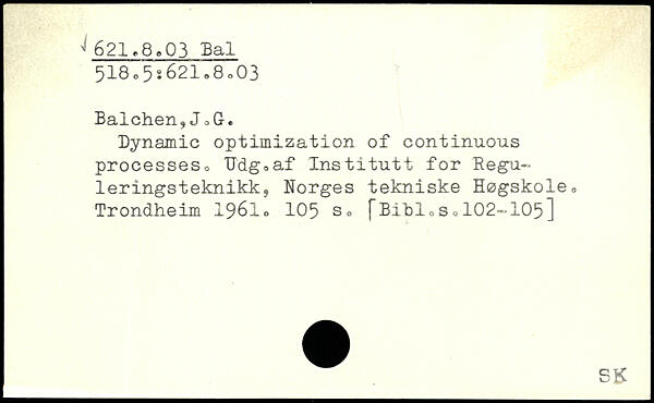 Dynamic optimization of continuous processeso TJdg=>af Institutt for Regu-leringsteknikk, Norges tekniske Hogskole,