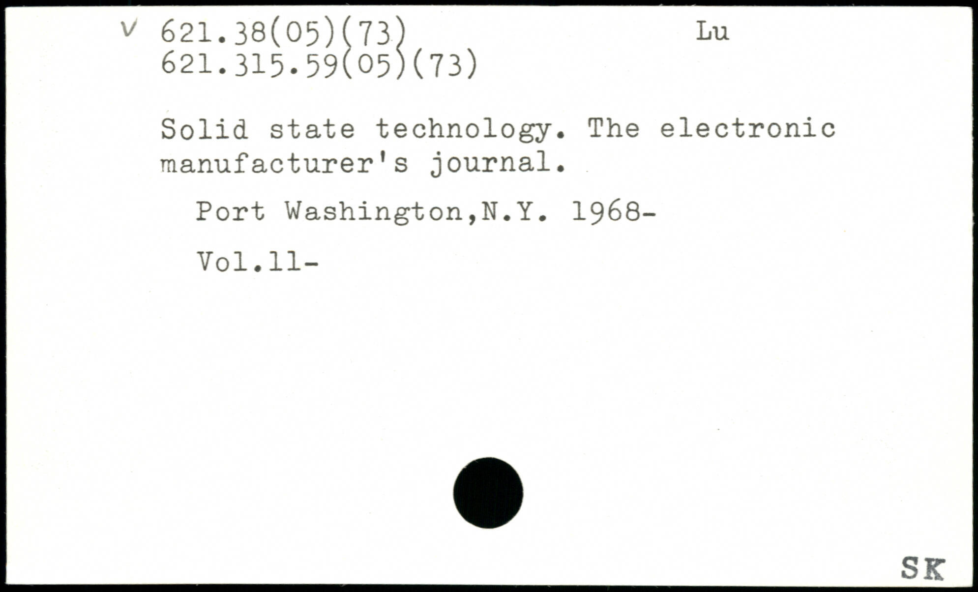 Solid state technology. The electronic manufacturer's journal. Port Washington,N.Y. 1968- Vol.ll-