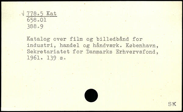 Katalog over film og "billedbånd for industri, handel og håndværk.