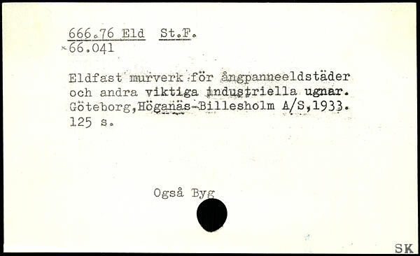 Eldfast murverk .'för ångpanneeldstader och andra viktiga Jmdiigjriella ugnar. Götehorg,Höganäs—Billeshölm å/S,1933.