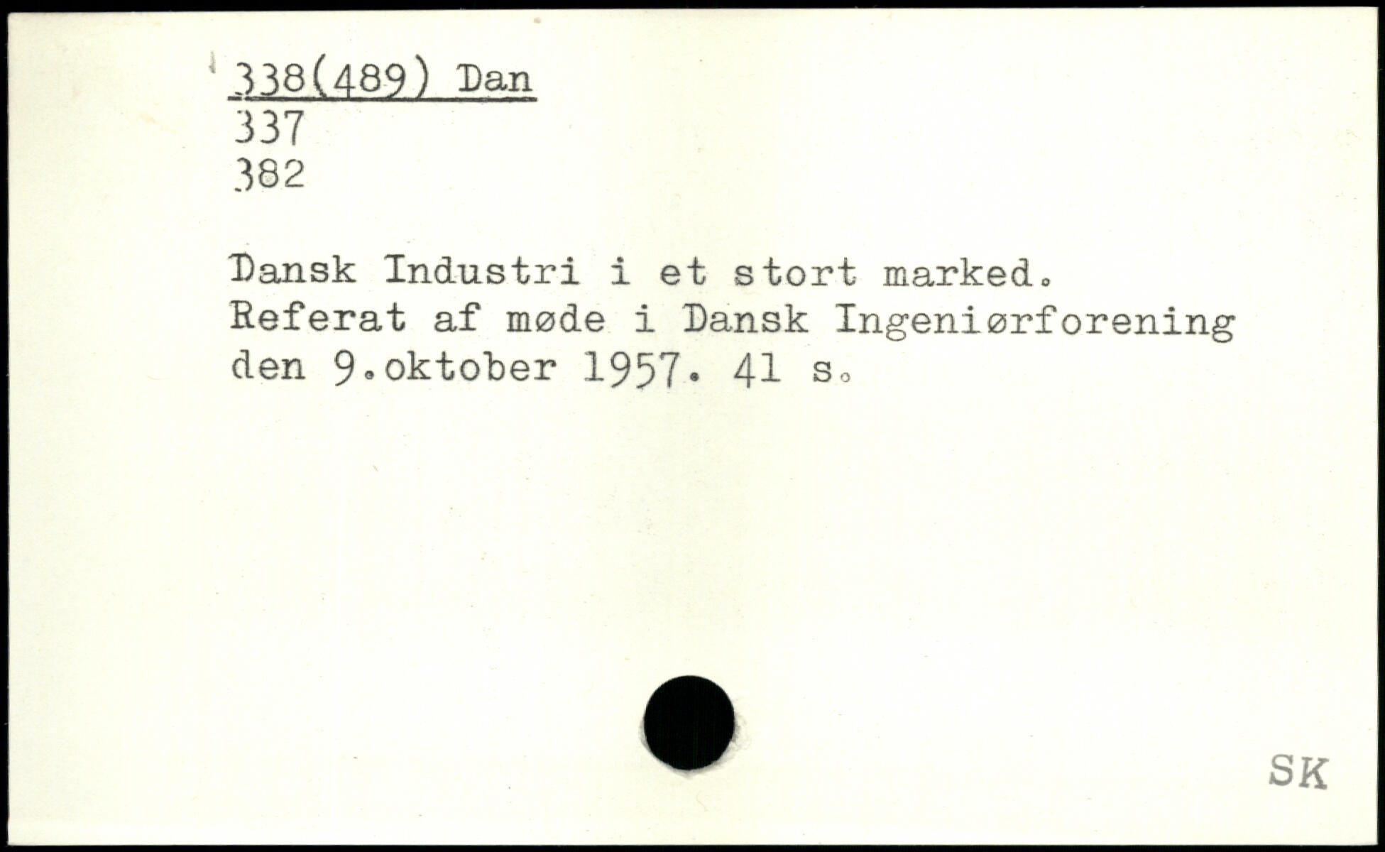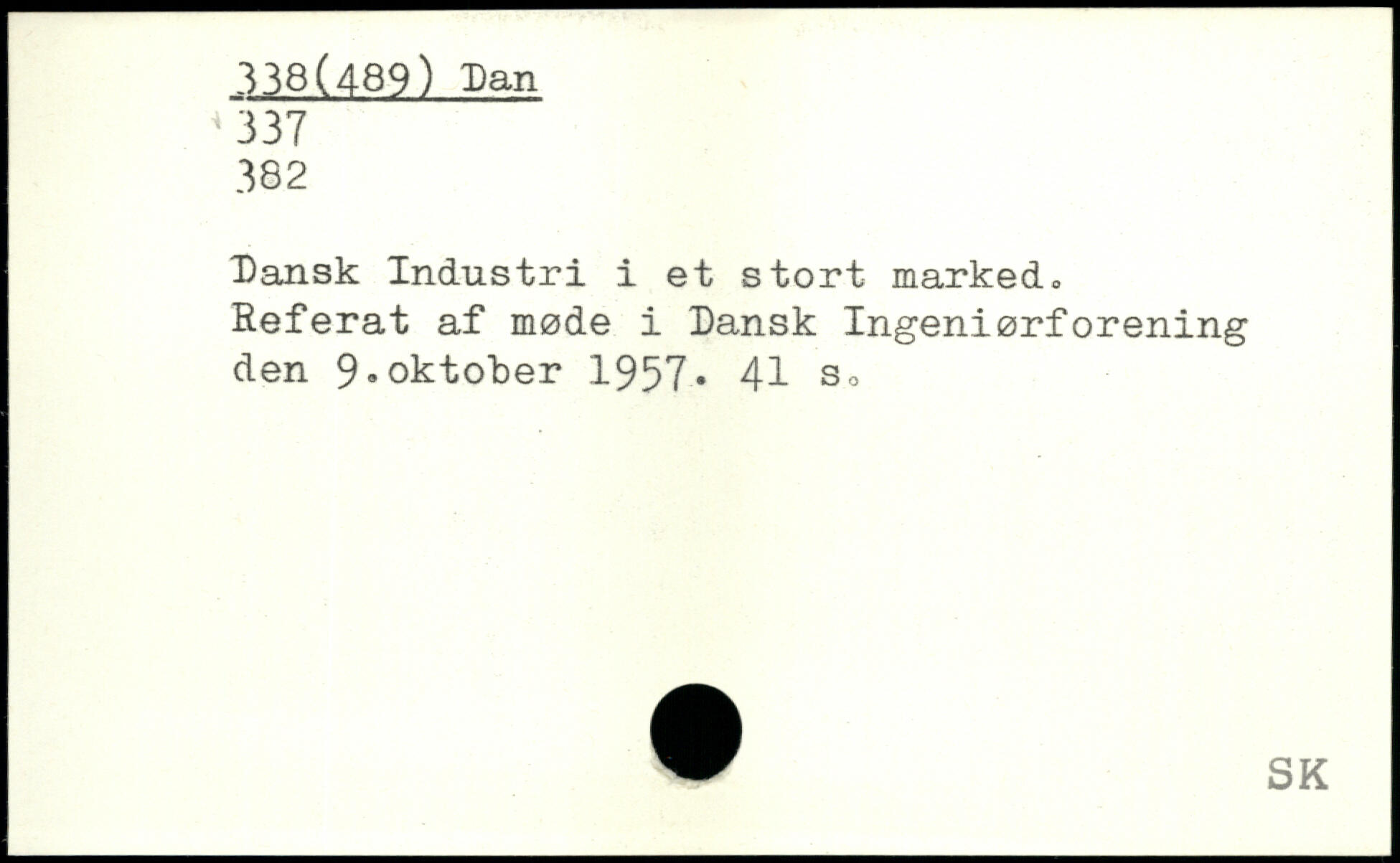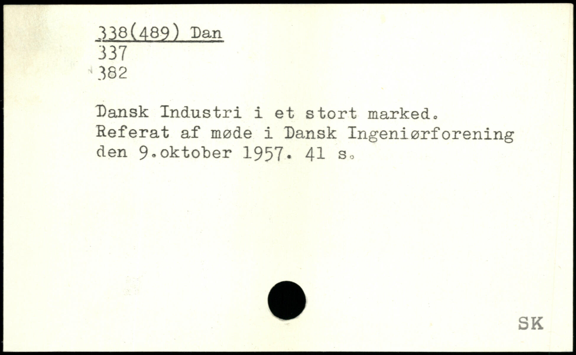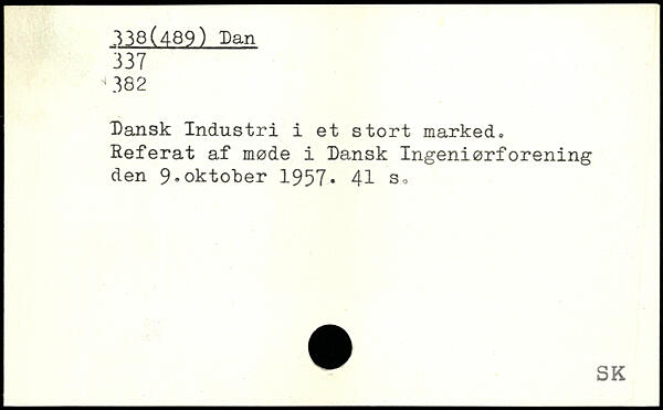 Dansk Industri i et stort marked. Referat af møde i Dansk Ingeniørforening den 9.oktober 1957.