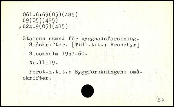 Statens nämnd, för byggnadsforskning. Småskrifter. [Tidl.tit.: Broschyr]
