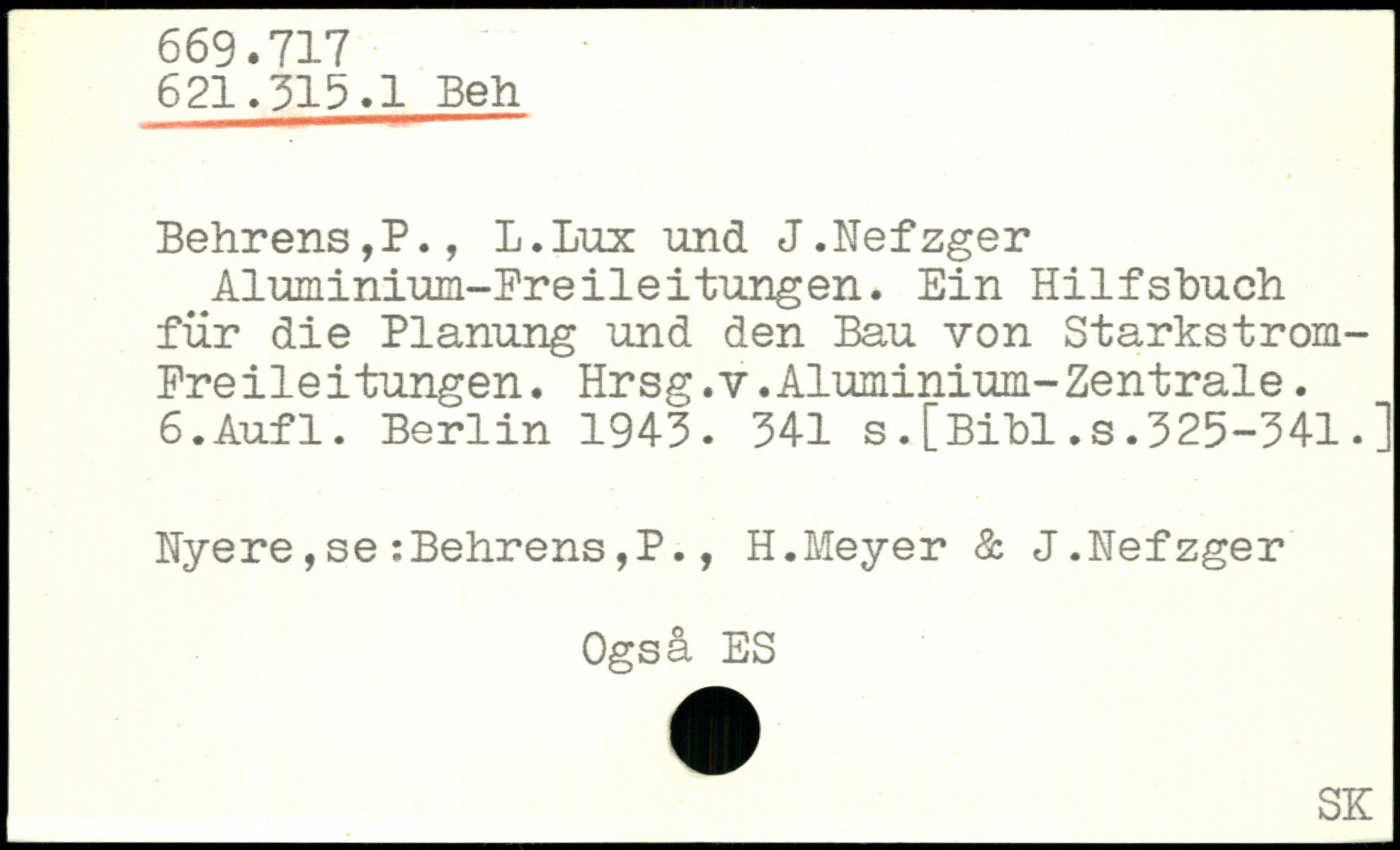 Behrens,P., L.Lux und J.Nefzger ^ Aluminium-Freileitungen. Ein Hilfstuch für die Planung und den Bau von Stärkstrom-Preileitungen. Hrsg.v.Aluminium-Zentrale.