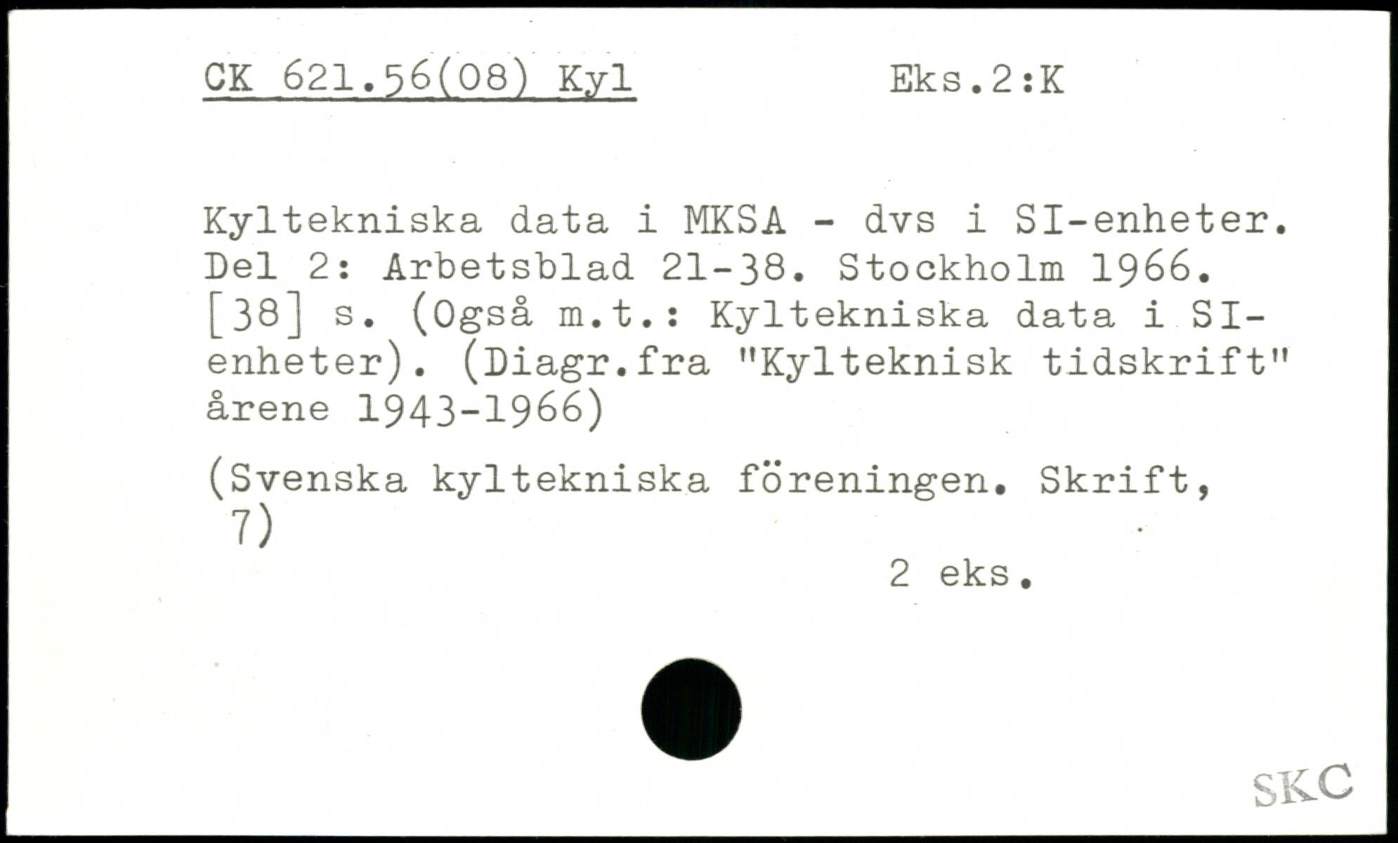 Kyltekniska data i MKSA - dvs i Sl-enheter. Del 2: Arbetsblad 21-38.