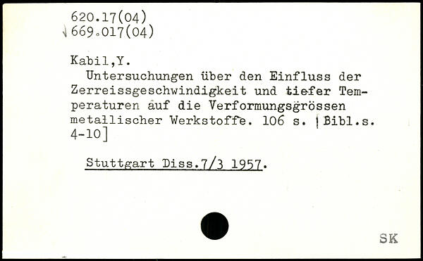 Untersuchungen über den Einfluss der Zerreissgeschwindigkeit und tiefer Temperaturen auf die Verformungsgrössen metallischer Werkstoffe.