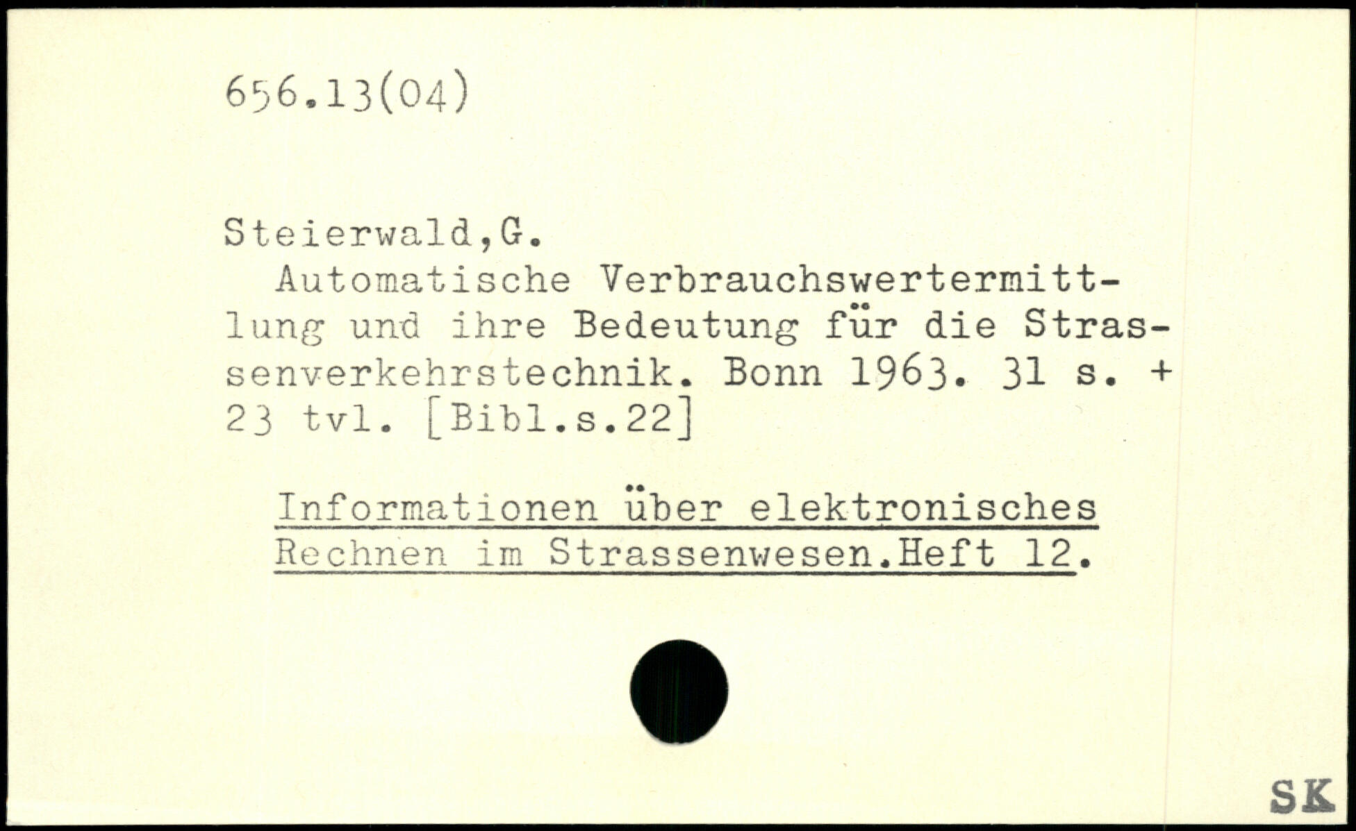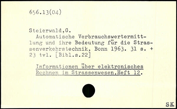 Automatische Verbrauchswertermittlung und ihre Bedeutung für die Stras-senverkehrstechnik. Bonn 1963.