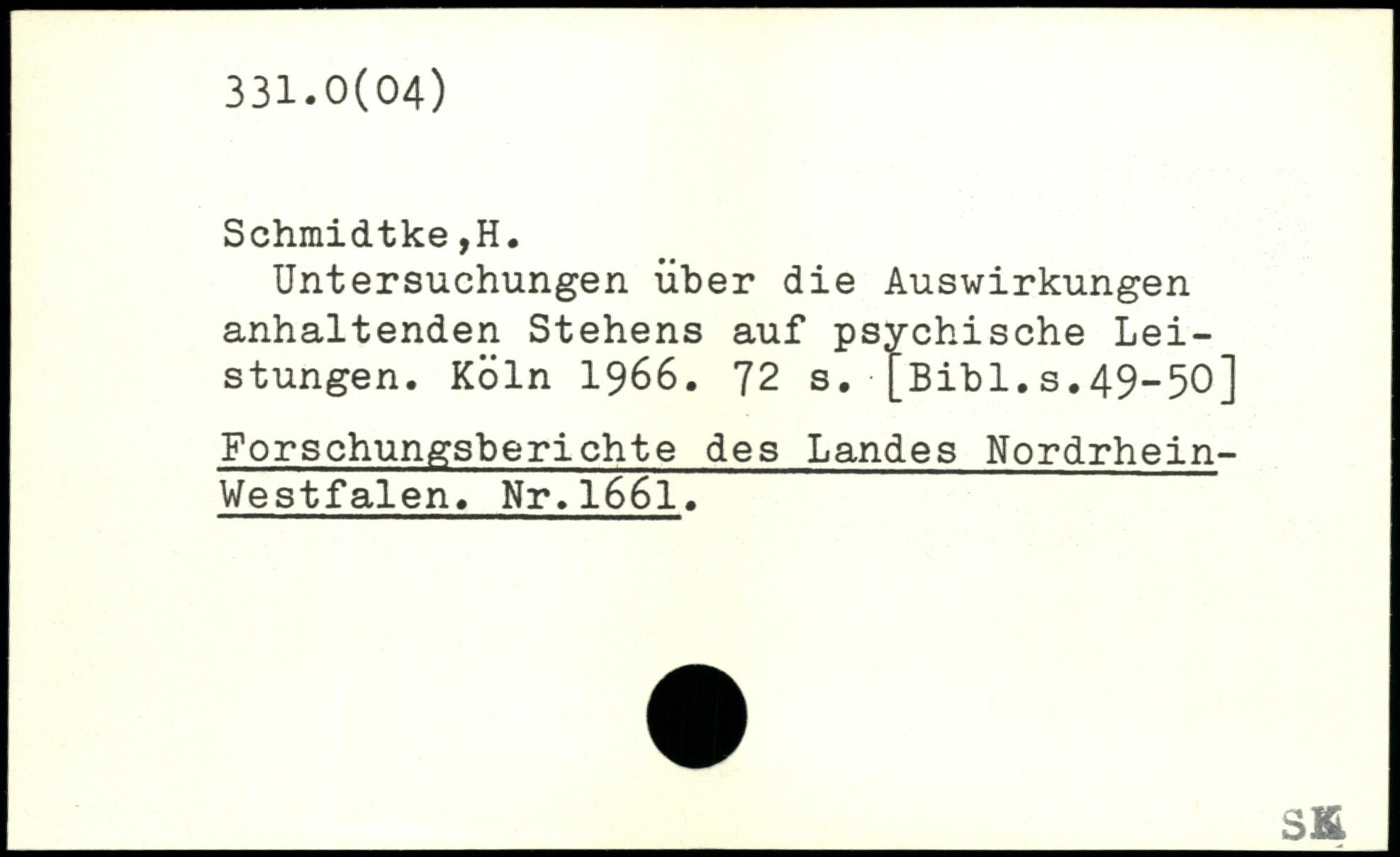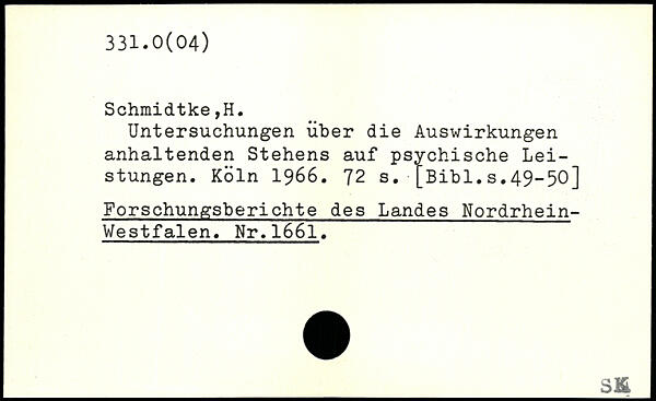 Untersuchungen über die Auswirkungen anhaltenden Stehens auf psychische Leistungen.