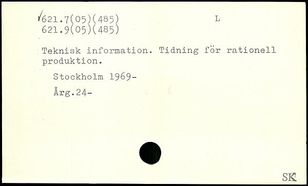 Teknisk information. Tidning för rationell produktion. Stockholm 19^9- Årg.24- ___I