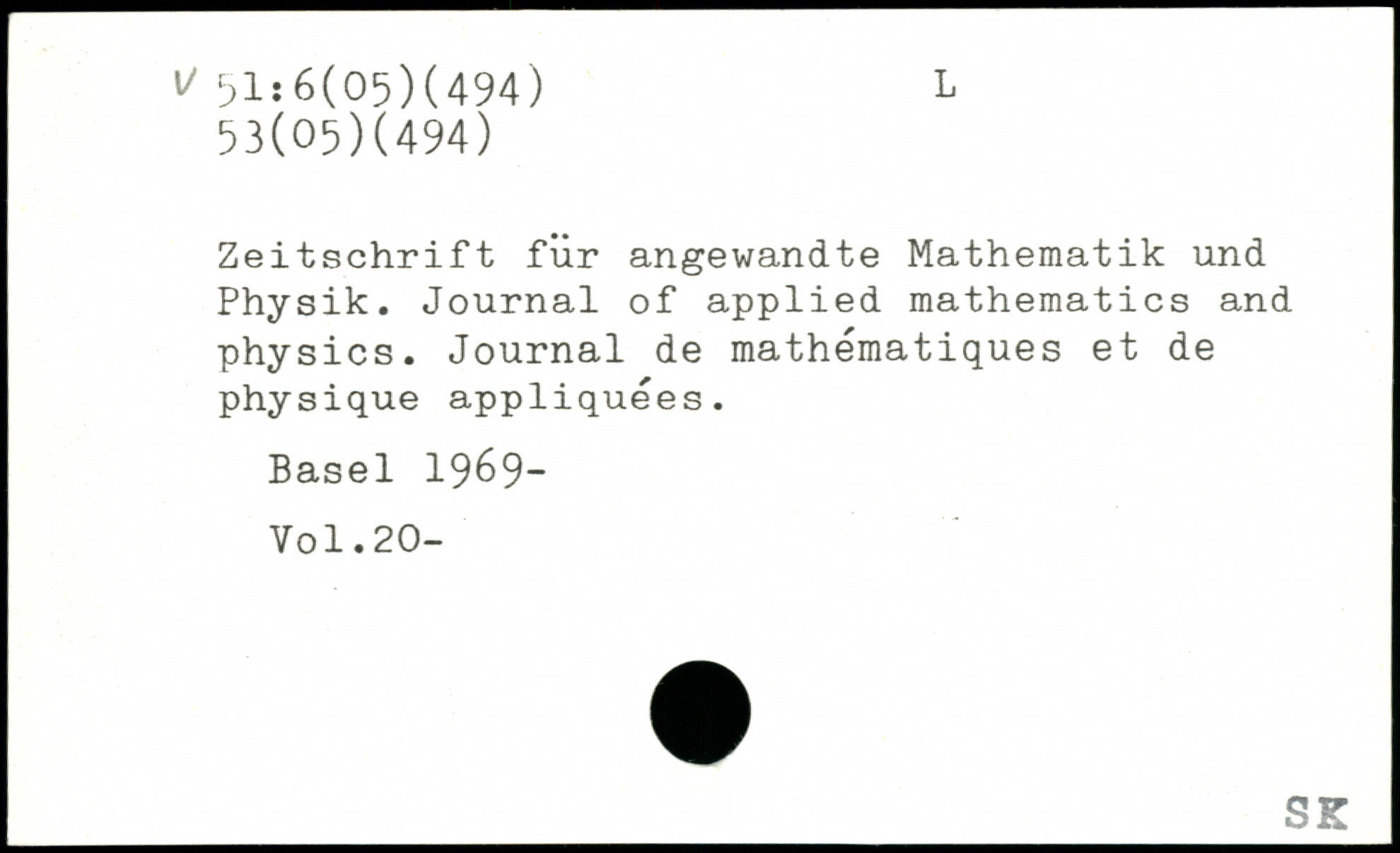 Zeitschrift für angewandte Mathematik und Physik. Journal of applied mathematics and physics. Journal de mathématiques et de physique appliquées.