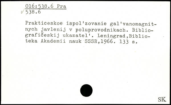 Prakticeskoe ispol'zovanie gal'vanomagnit-nych javlenij v poluprovodnikach. Bibliograf iceskij ukazatel..