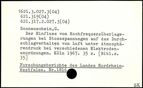 Der Einfluss von Hochfrequenzüberlagerungen bei Stossspannungen auf das Durchschlagverhalten von Luft unter Atmosphärendruck bei verschiedenen Elektrodenanordnungen.