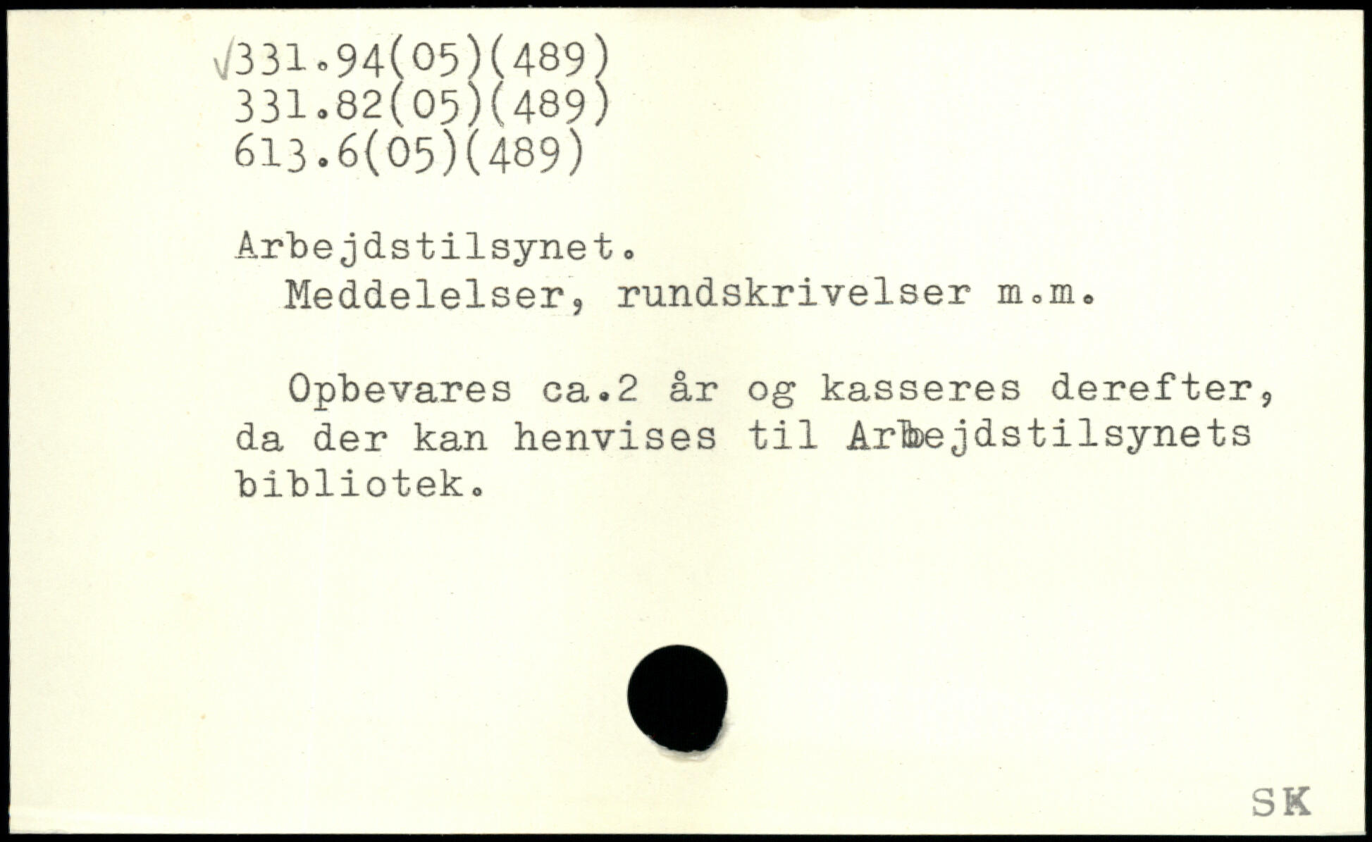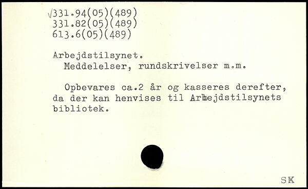 Meddelelser, rundskrivelser m0m0 Opbevares ca.2 år og kasseres derefter, da der kan henvises til Arbejdstilsynets bibliotek