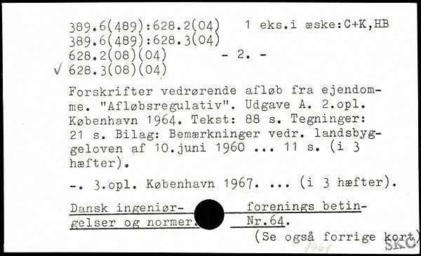 Forskrifter vedrørende afløb fra ejendomme. "Afløbsregulativ". Udgave A. 2.opl.