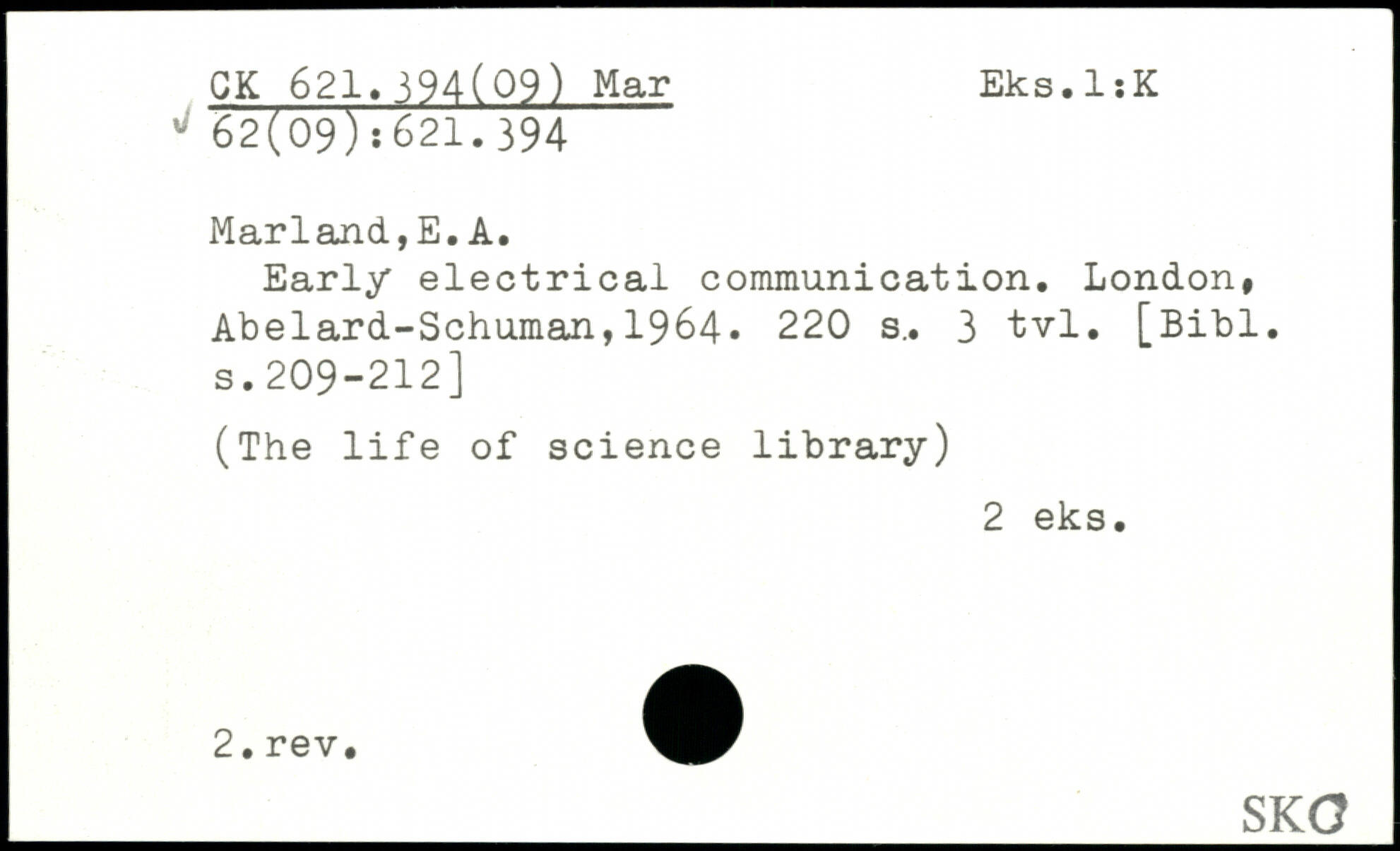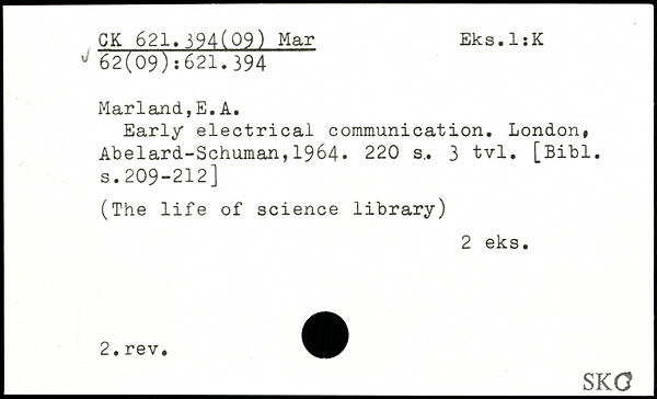 Early electrical communication. London. Abe lard-Schuman, 1964