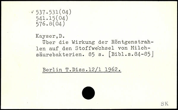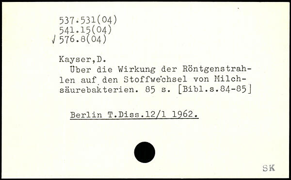 Uber die Wirkung der Röntgenstrah-len auf den Stoffwechsel von Milchsäurebakterien.