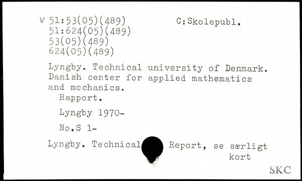 Lyngby. Technical university of Denmark. Danish center for applied mathematics and mechanics. Rapport. Lyngby 1970- No.S 1- Lyngby. Technical^Ä Report, se særligt kort