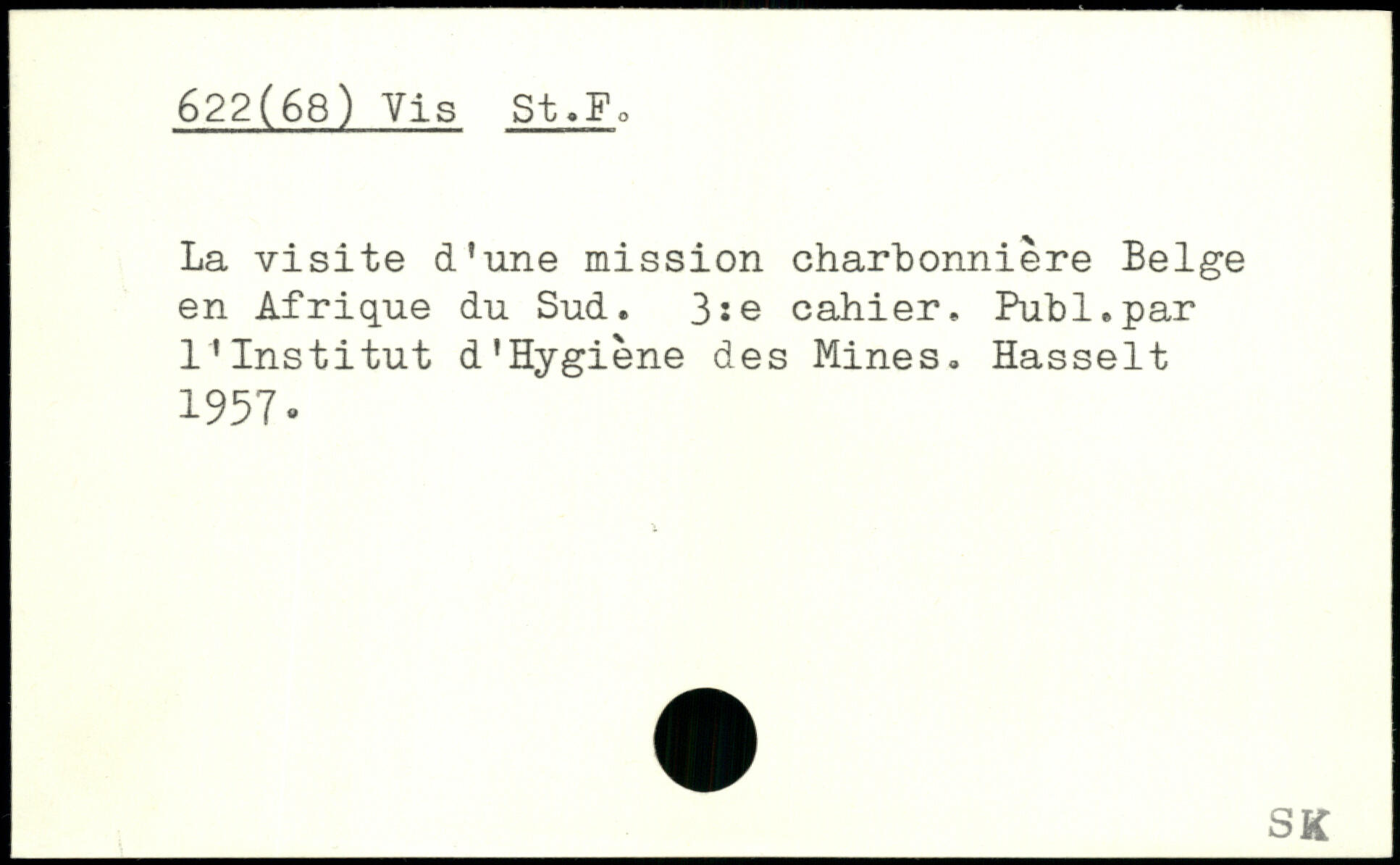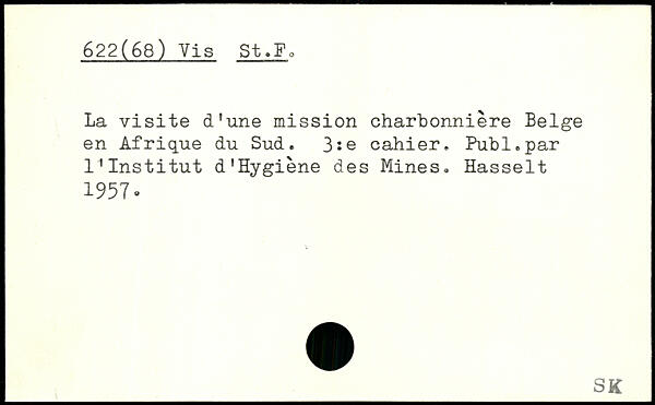 La visite d’une mission charbonnière Belge en Afrique du Sud. 3ie cahier. Publ.par l’Institut d'Hygiène des Mines. Hasselt 1957-