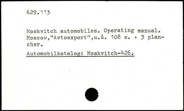 Moskvitch automobiles. Operating manual. Moscow,"Avtoexport",u.å.
