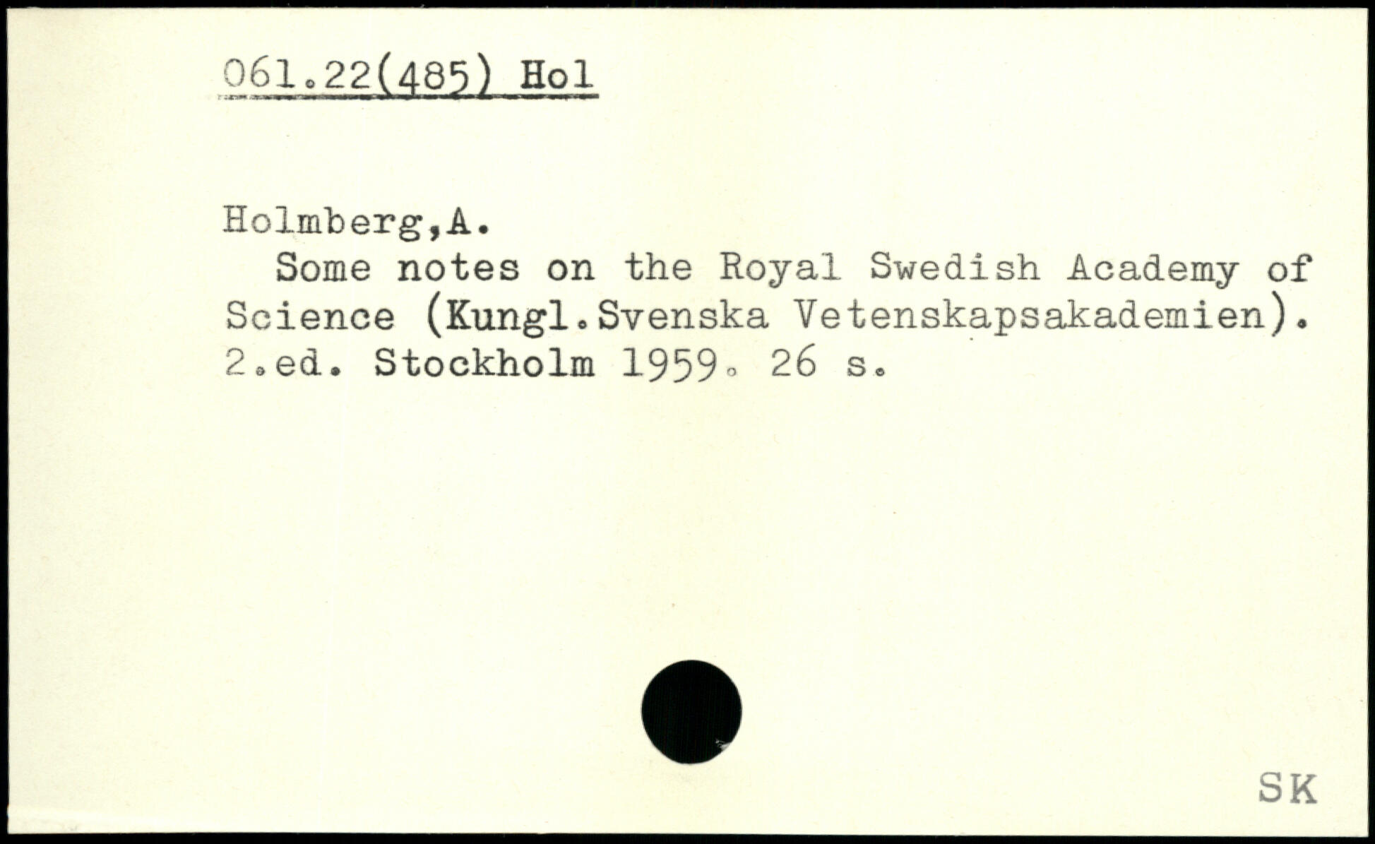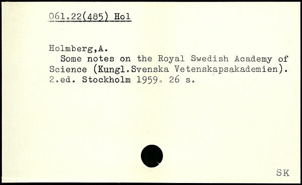 Some notes on the Royal Swedish Academy of Science (Kungl .Svenska Vetenskapsakademien). 2,ed.