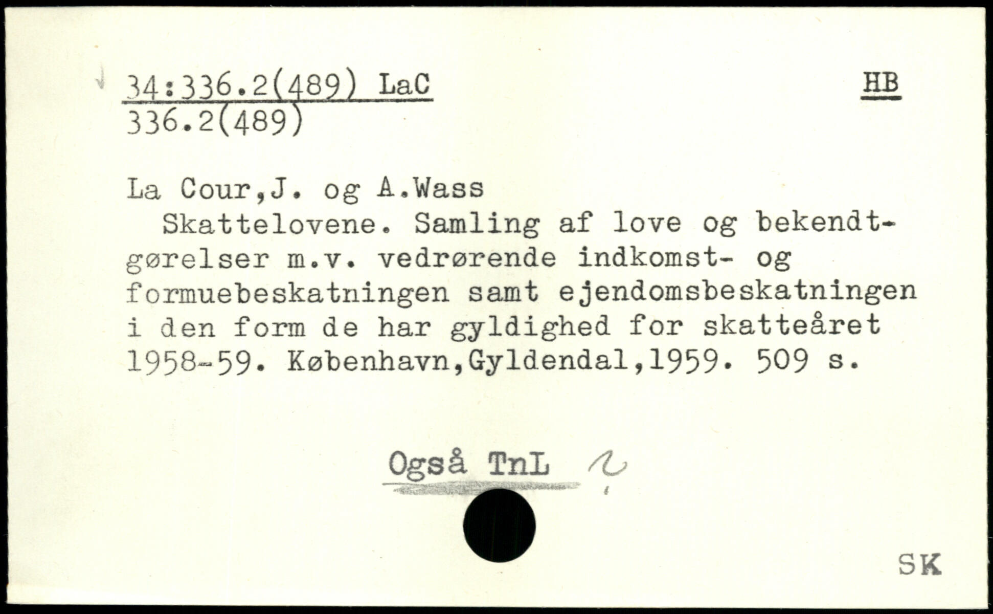 Skattelovene. Samling af love og bekendt-gørelser m.v. vedrørende indkomst- og formuebeskatningen samt ejendomsbeskatningen i den form de har gyldighed for skatteåret 1958-59.