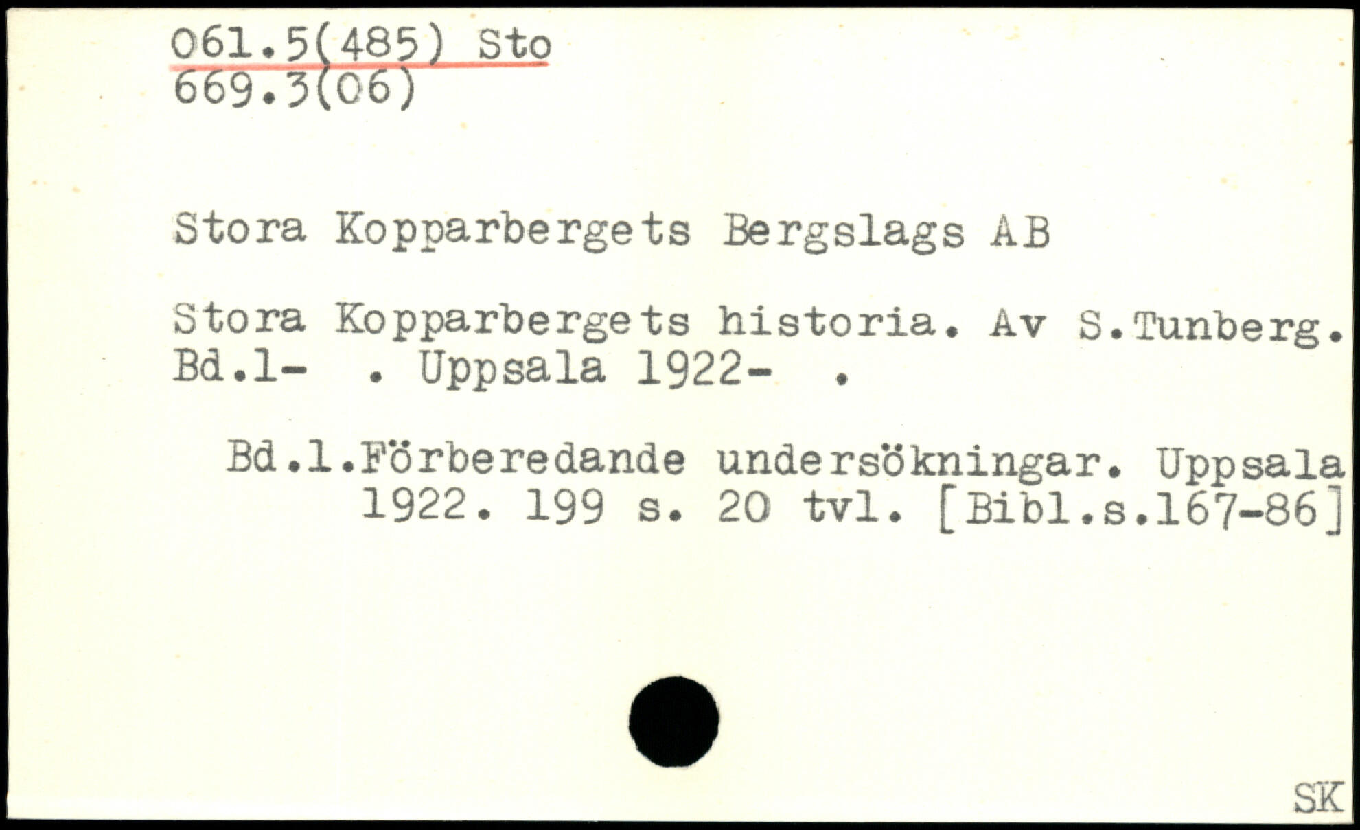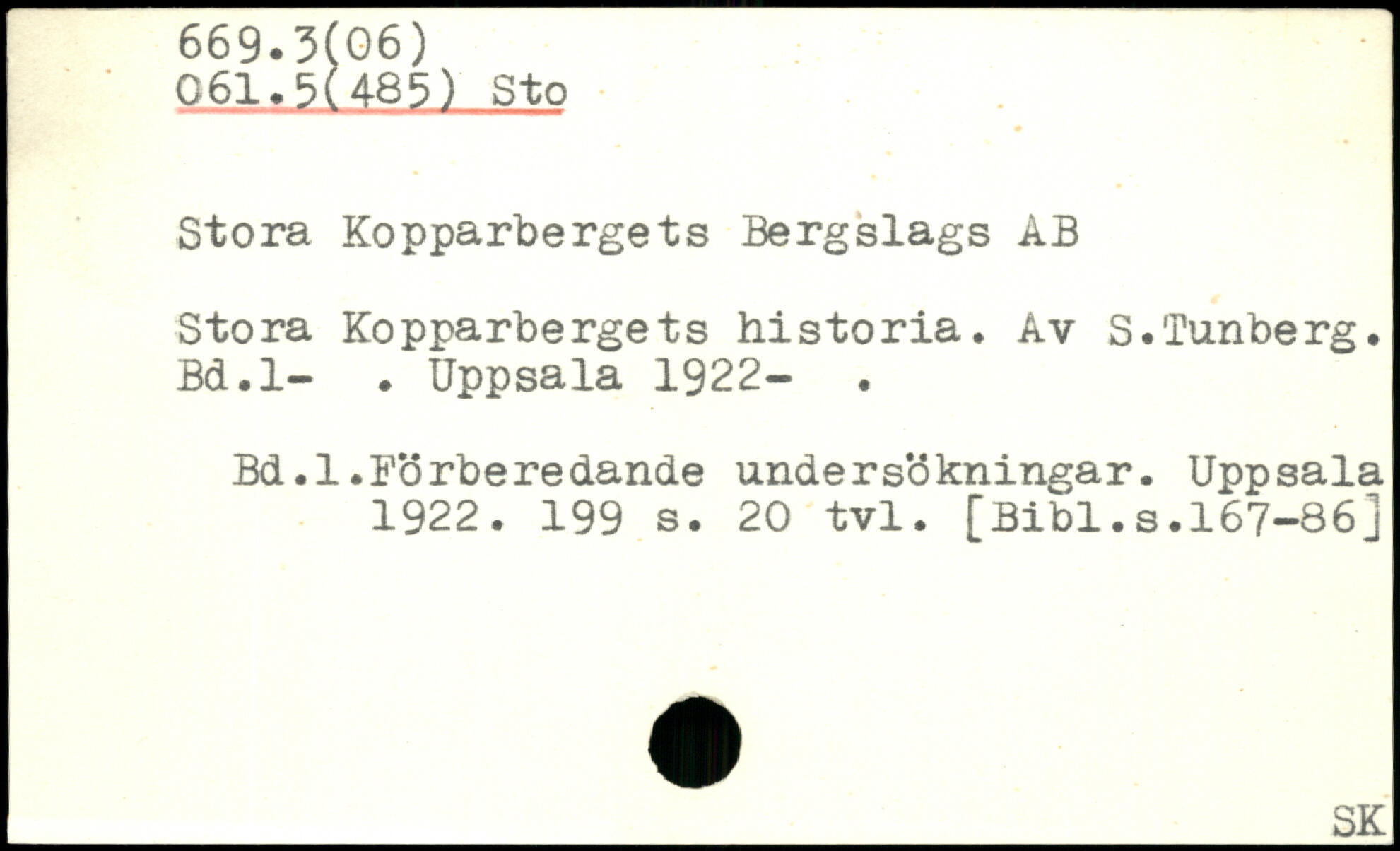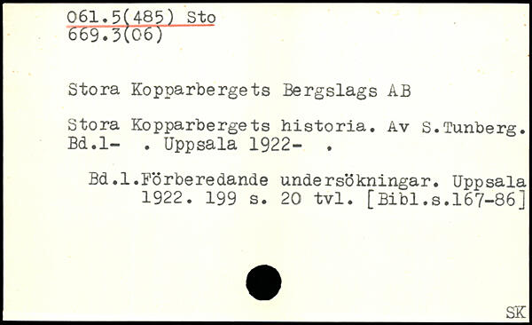Stora Kopparbergets Bergslags AB Stora Kopparbergets historia. Av S.Tunberg. Bd.l-.