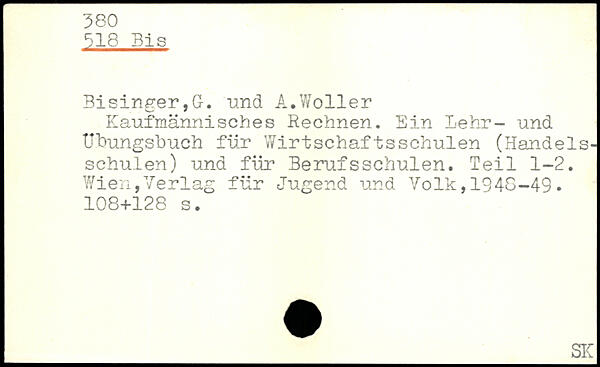 Bisinger,Gr. "and A.Woller Kaufmännisches Rechnen. Ein Lehr- und Übungsbuch für Wirtschaftsschulen (Handelsschulen) und für Berufsschulen. Teil 1-2. Wien,Verlag für Jugend und Volk,1948-49.