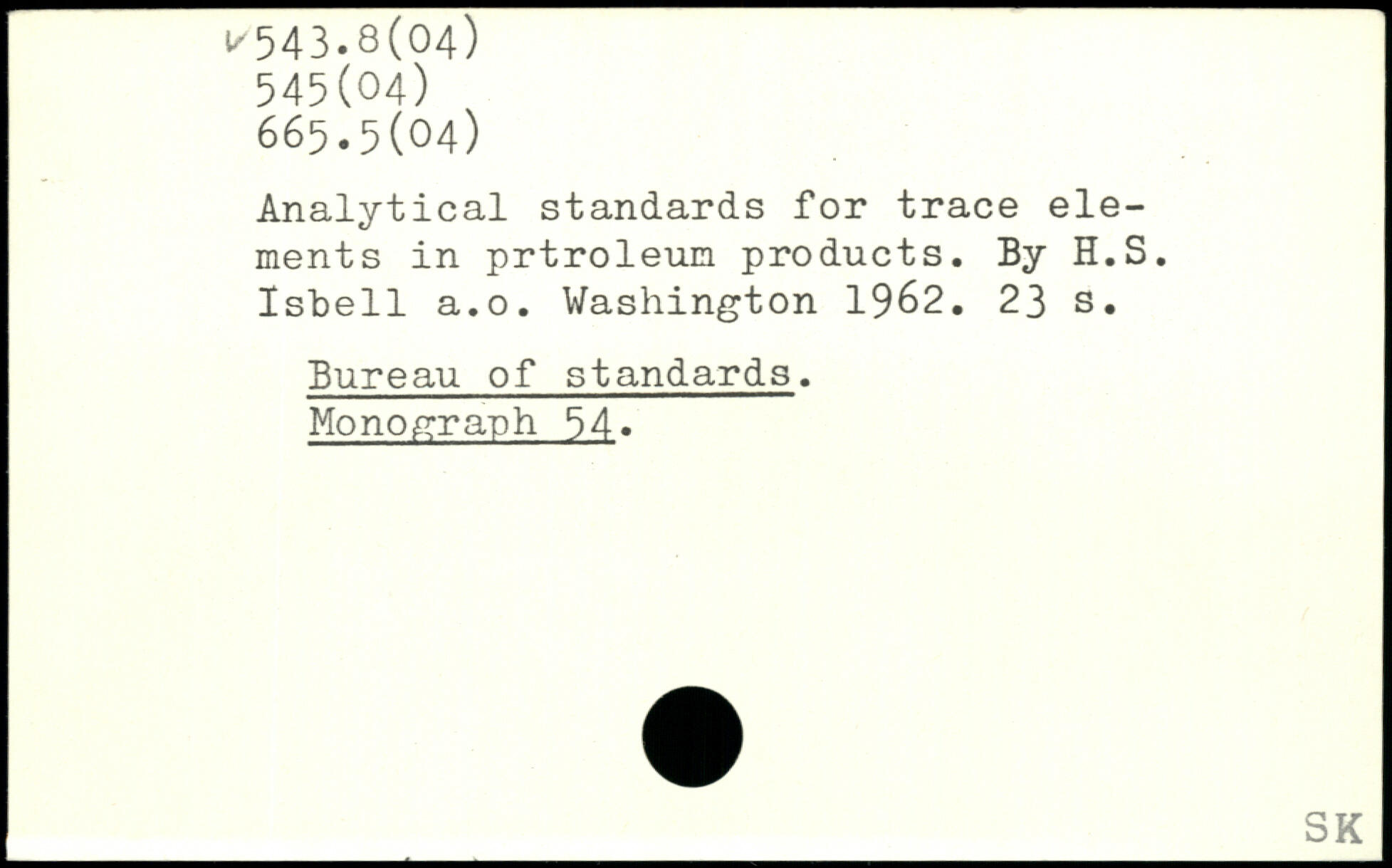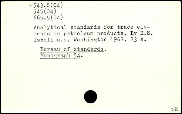 Analytical standards for trace elements in prtroleun products. By H.S. Isbell a.o.