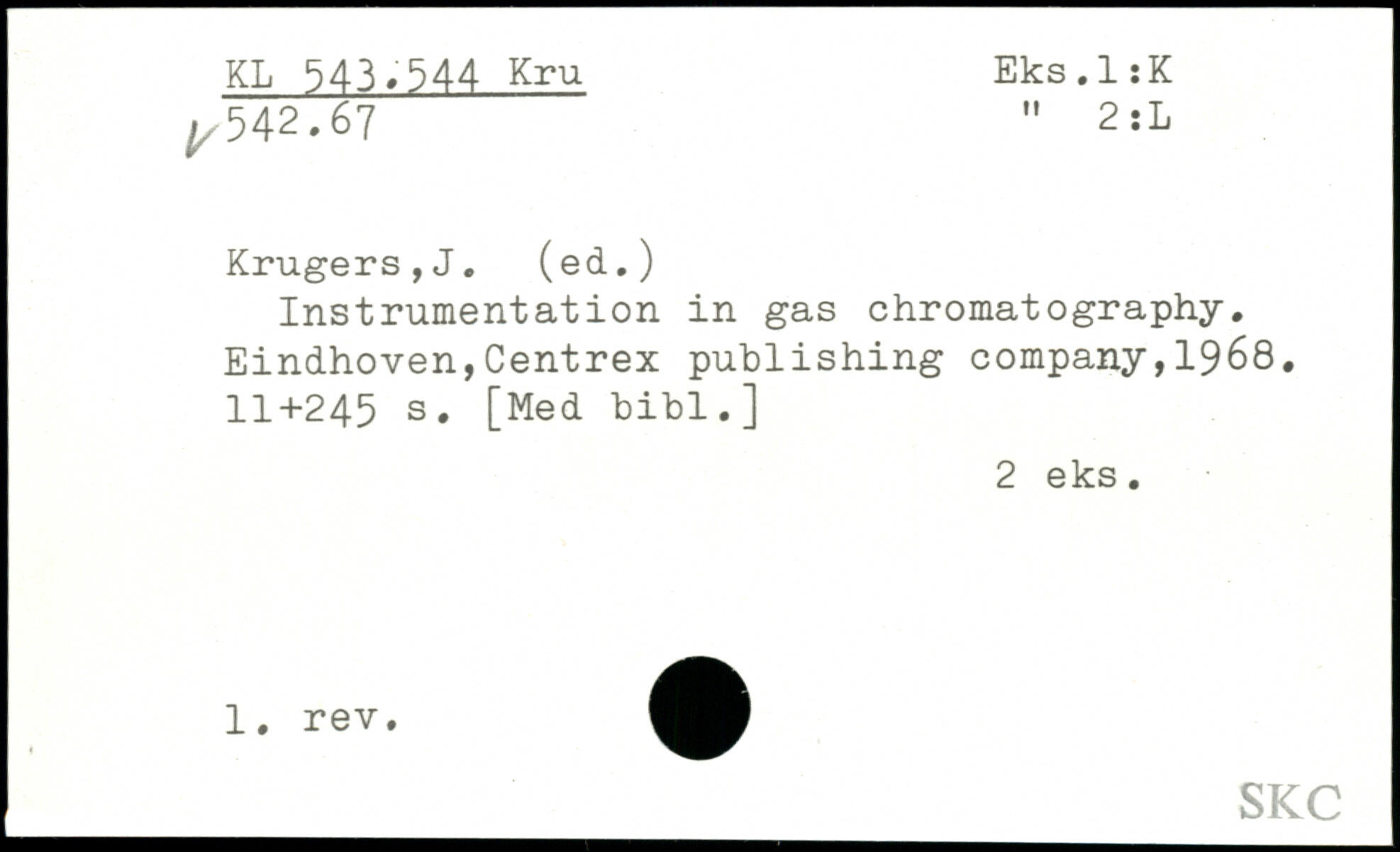 Instrumentation in gas chromatography, Eindhoven,Centrex publishing company,1968. 11+245 s. [Med bibl.]