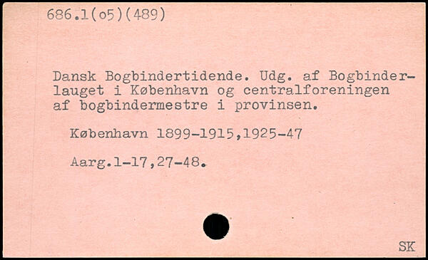 Dansk Bogbindertidende. Udg. af Bogbinder-lauget i København og centralforeningen af bogbindermestre i provinsen.