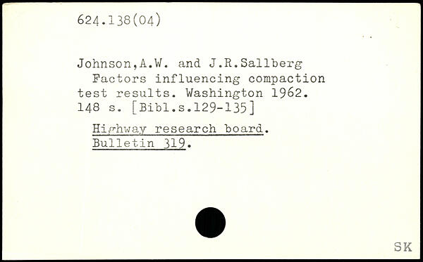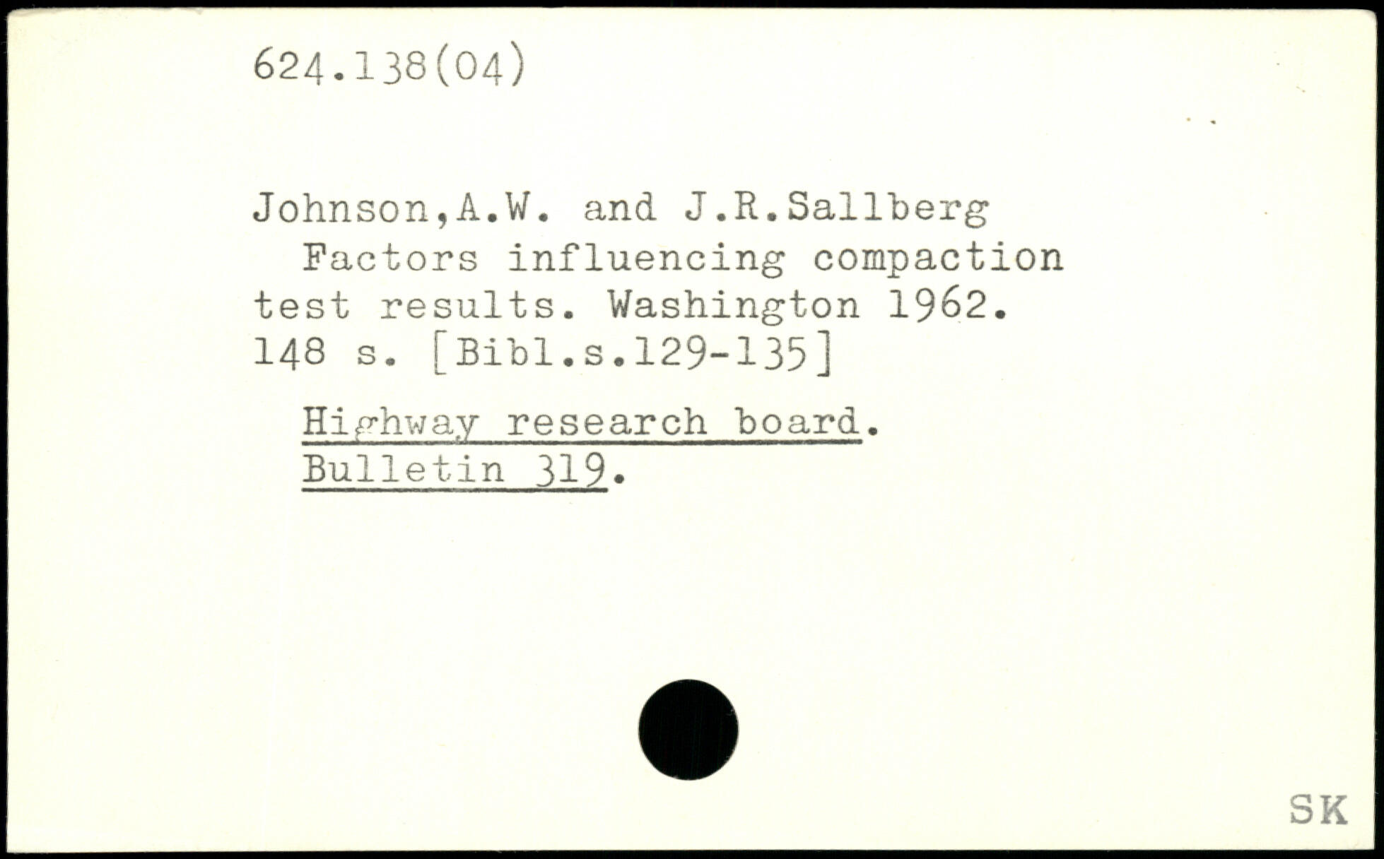 Johnson,A.W. and J.R.Sallberg Factors influencing compaction test results.