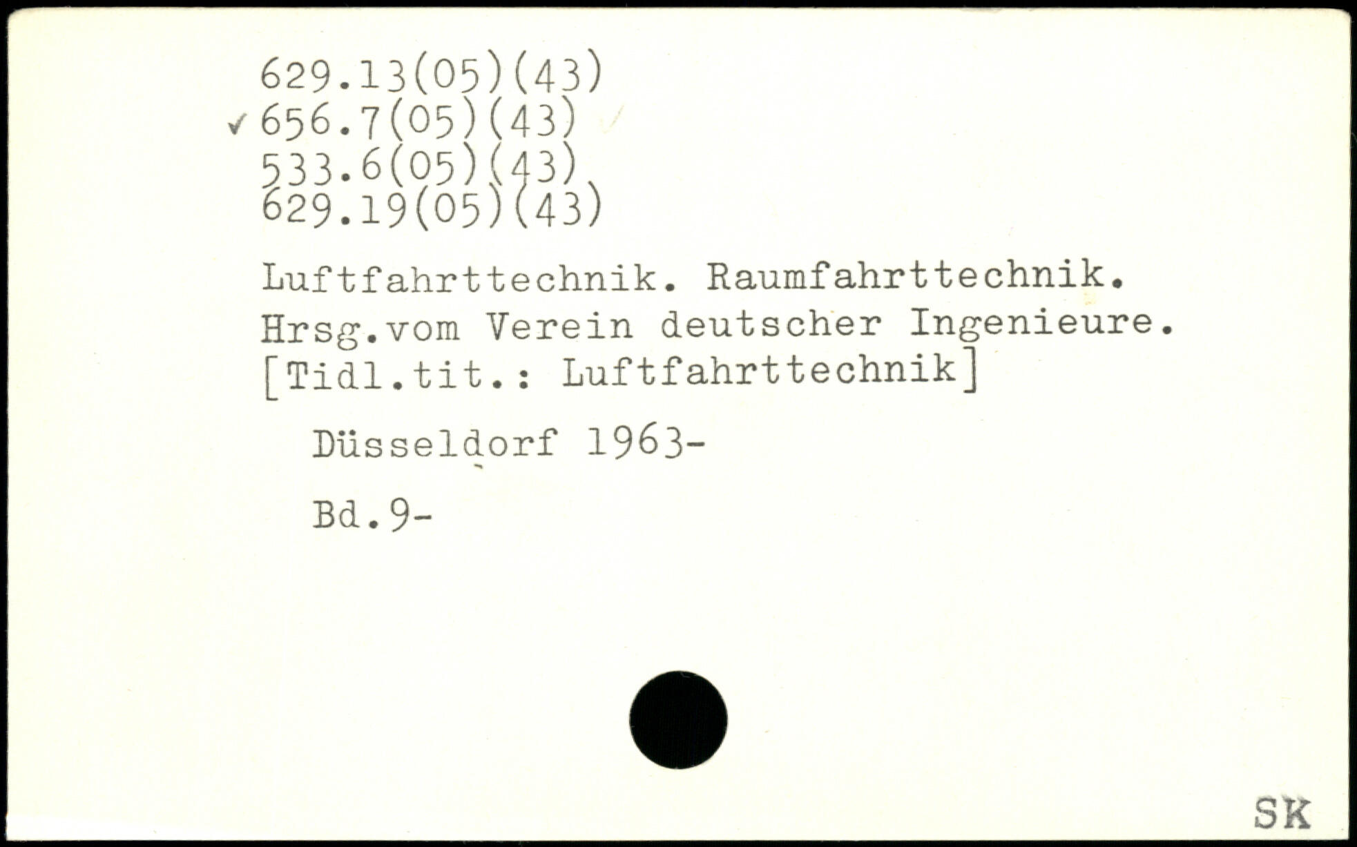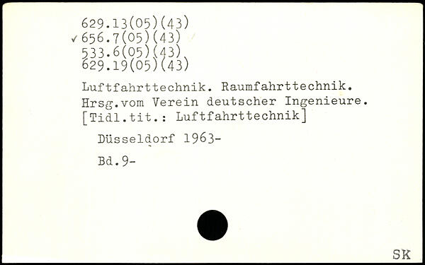 Luftfahrttechnik. Raumfahrttechnik. Hrsg.vom Verein deutscher Ingenieure. [Tidl.tit.s Luftfahrttechnik] Düsseldorf 1963-