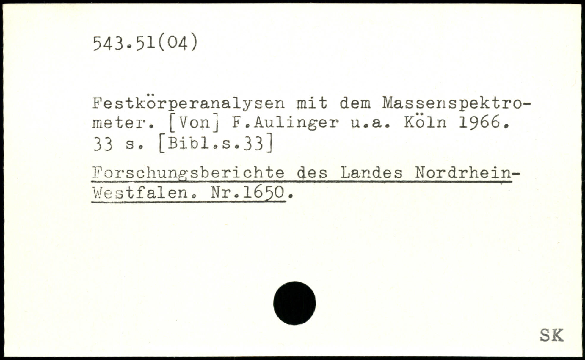 Festkörperanalysen mit dem Massenspektrometer. [Vonj F.Aulinger u.a.