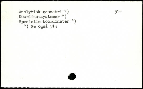 Analytisk geometri .) 516 Koordinatsystemer .) Specielle koordinater .) .) Se også 515