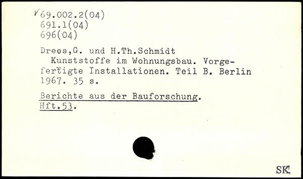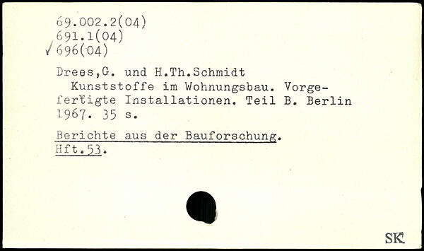 Drees,G. und H.Th.Schmidt Kunststoffe im Wohnungsbau. Vorgefertigte Installationen. Teil B.