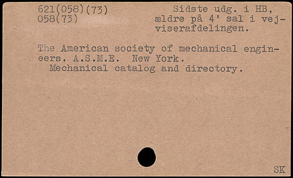 viserafdelingen. The American society of mechanical engineers. A.S.M.E. New York. Mechanical catalog and directory.