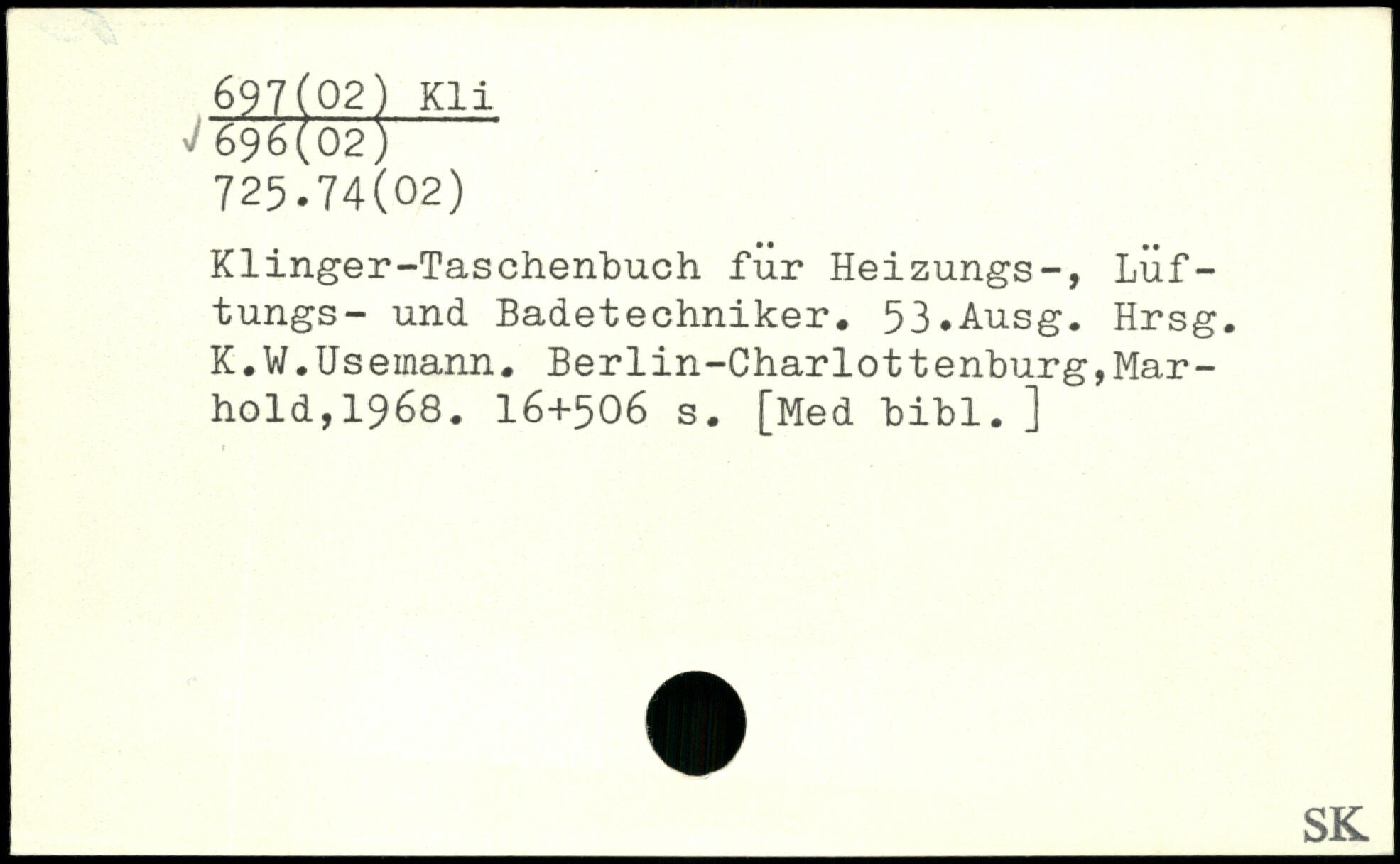 Klinger-Taschenbuch fur Heizungs-, LÜf-tungs- und Badetechniker. 53.Ausg. Hrsg. K.W.Usemann.