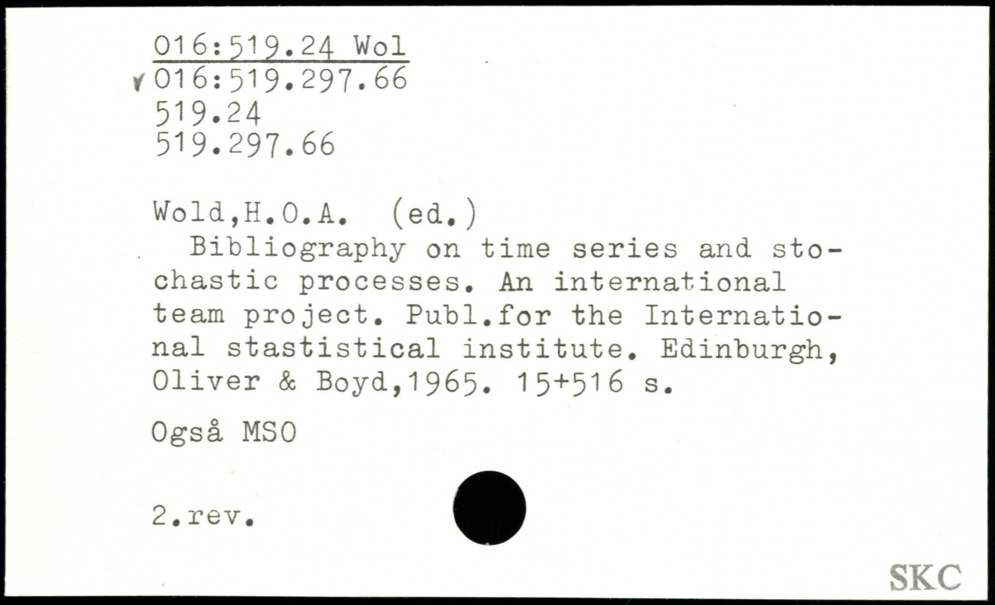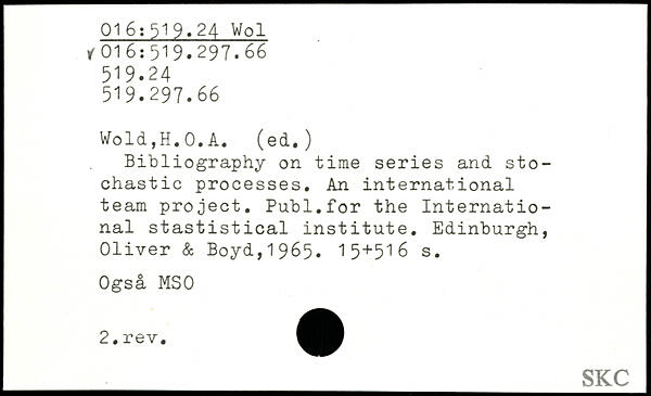 Bibliography on time series and stochastic processes. An international team project. Publ.for the International stastistical institute.