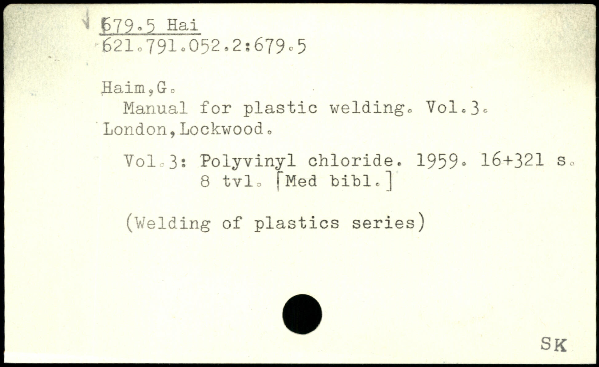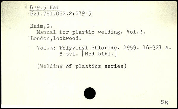 Haim?Gc Manual for plastic welding. Yol.3e London,Lockwood. Volo3: Polyvinyl chloride. 1959.