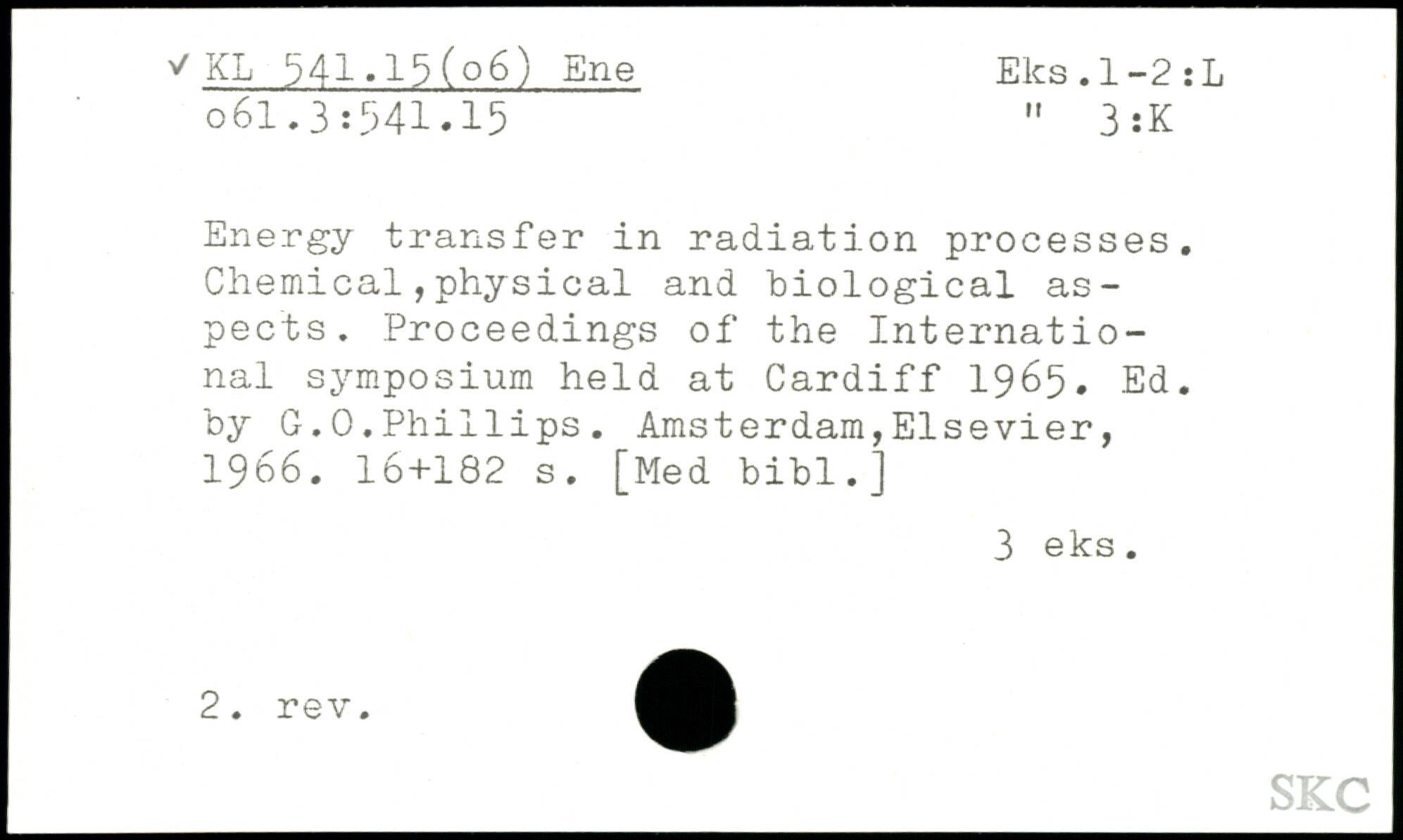 Energy transfer in radiation processes. Chemical,physical and biological aspects. Proceedings of the International symposium held at Cardiff 1965. Ed. by G.0.Ph1111ps.