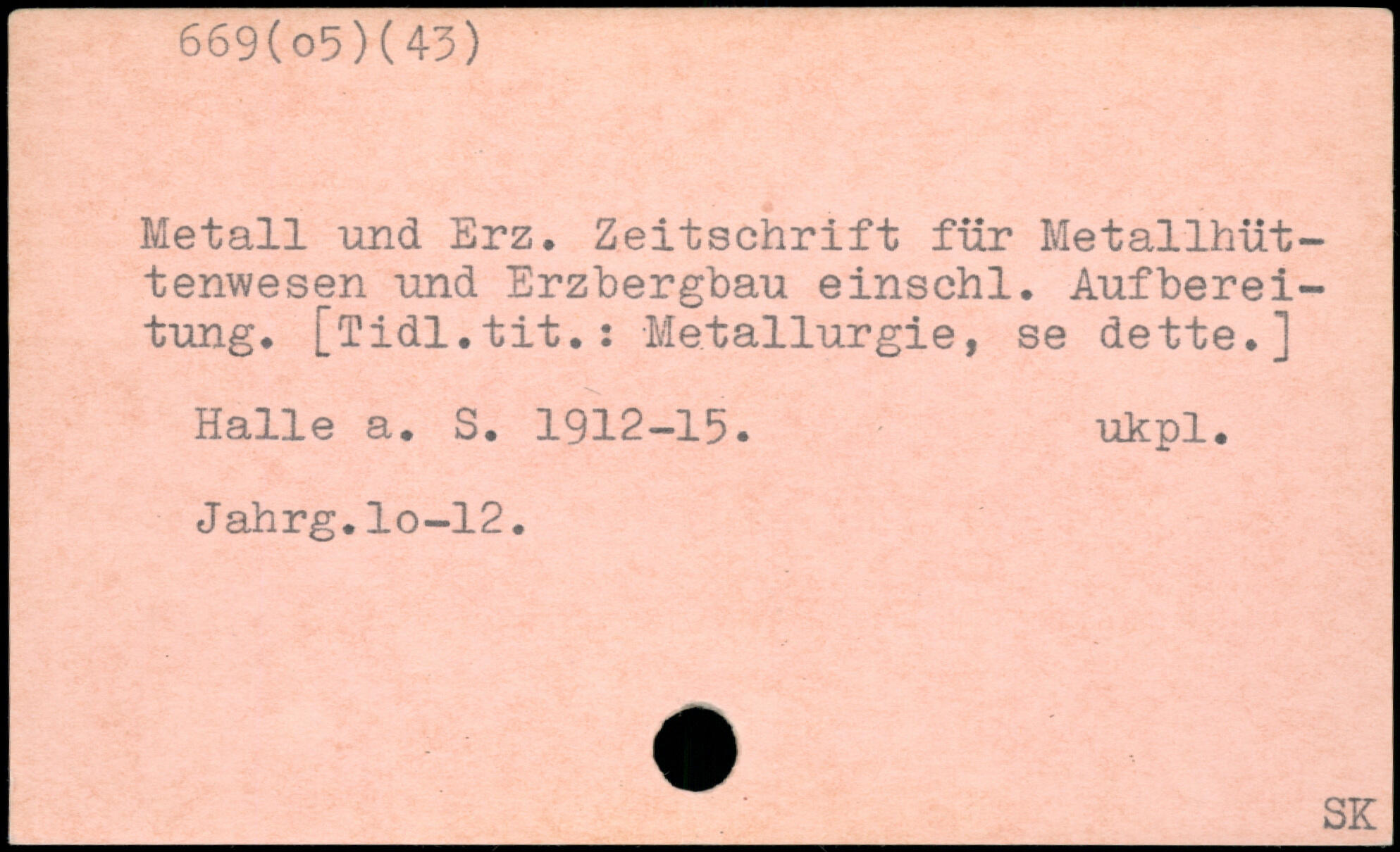 Metall und Erz, Zeitschrift für Metallhüttenwesen und Erzbergbau einschl. Aufbereitung, [Tidl.tit.: Metallurgie, se dette.] Halle a. S, 1912-15, ukpl. Jahrg.lo-12.