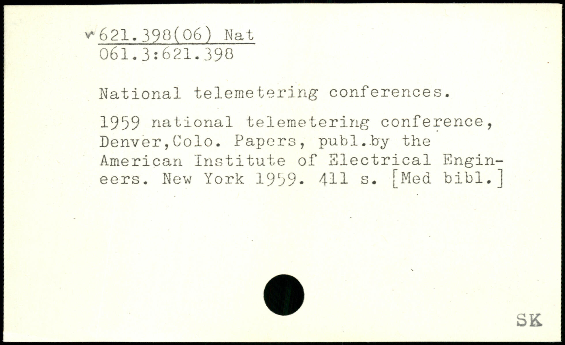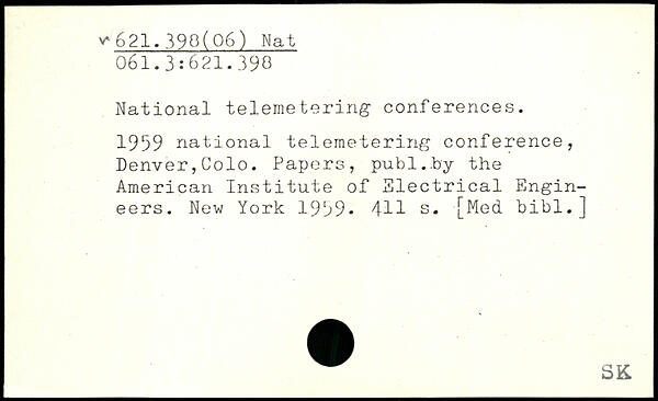 National telemetering conferences. 1959 national telemetering conference, Denver, Colo. Papers, publ.by the American Institute of Electrical Engineers.