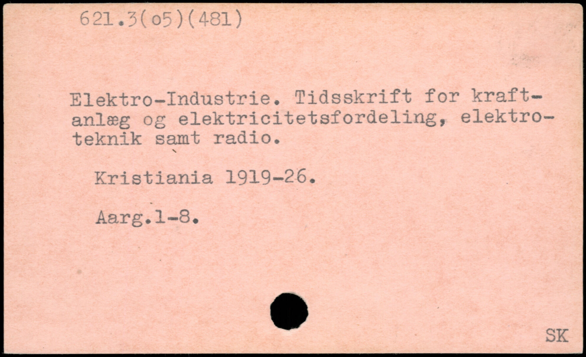 Elektro-Industrie. Tidsskrift for kraftanlæg og elektricitetsfordeling, elektroteknik samt radio. Kristiania 1919-26. Aarg.1-8.