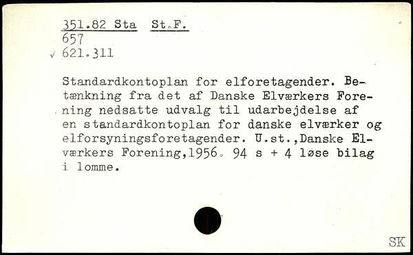 Standardkontoplan for elforetagender. Betænkning fra det af Danske Elværkers Fore-. ning nedsatte udvalg til udarbejdelse af en standardkontoplan for danske elværker og elforsyningsforetagender. U.st. ,Danske Elværkers Forening,1956o